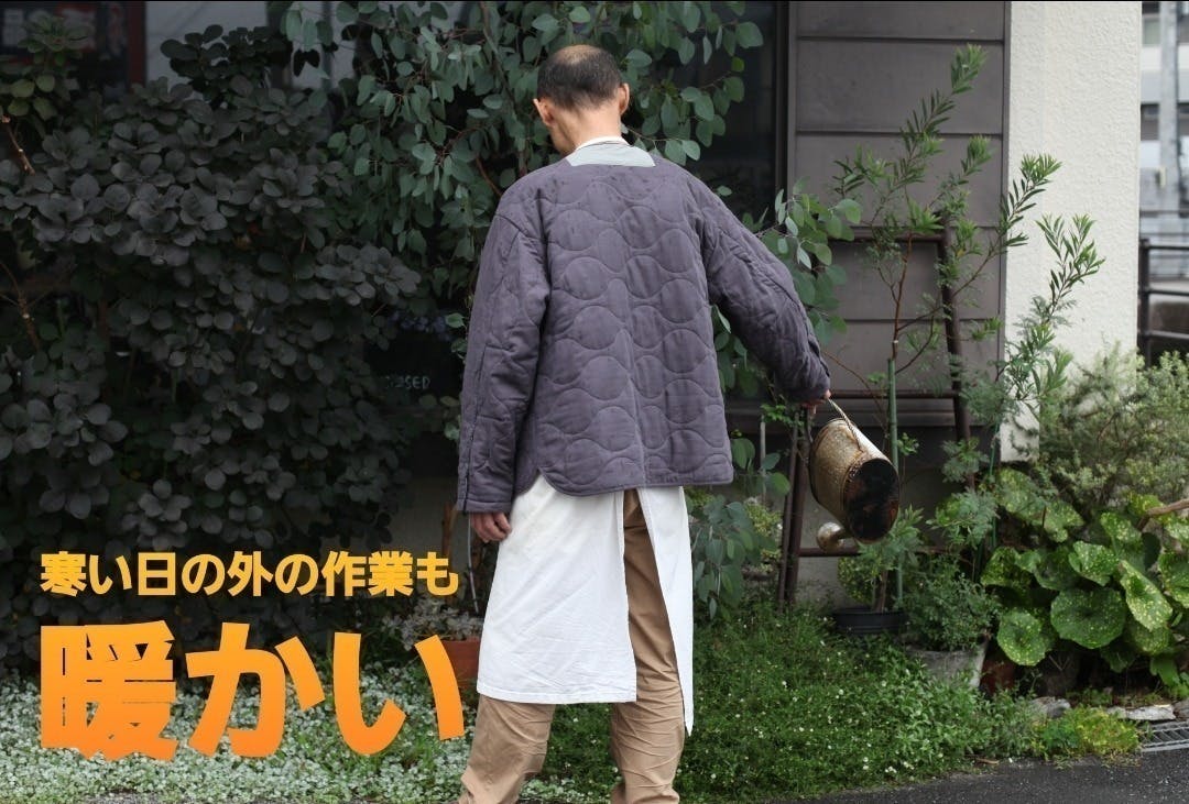 喫茶店オーナー 外で草木の水やりの最中も抜群の保温力