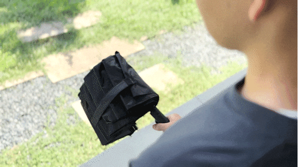 大きな円で、冷たい雨から守ってくれます。通常の折り畳み傘は直径90cm前後、ビニール傘は直径105cm程度。荷物があっても余裕でカバーできる大直径です。