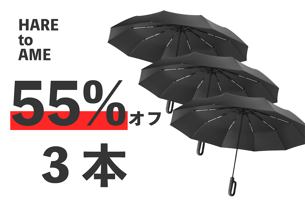 最大55%オフのお得なこの機会に、最強傘を使ってみませんか?