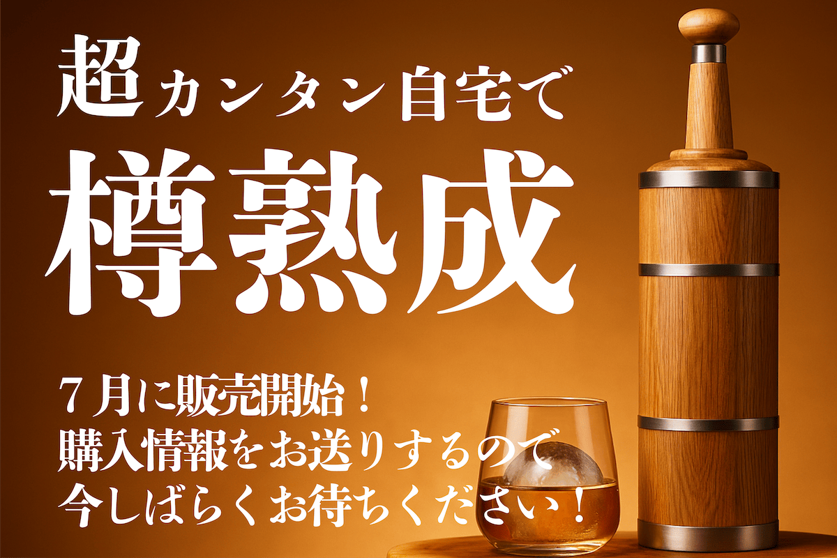 市販のウイスキーが、まるで長期熟成酒に?熟成力の高い熟成ボトルで、たった1日で香りも味も劇的に変化!ボトルにウイスキーを注いで待つだけで、いつものハイボールが特別な一杯に!自宅で熟成体験、始めませんか?