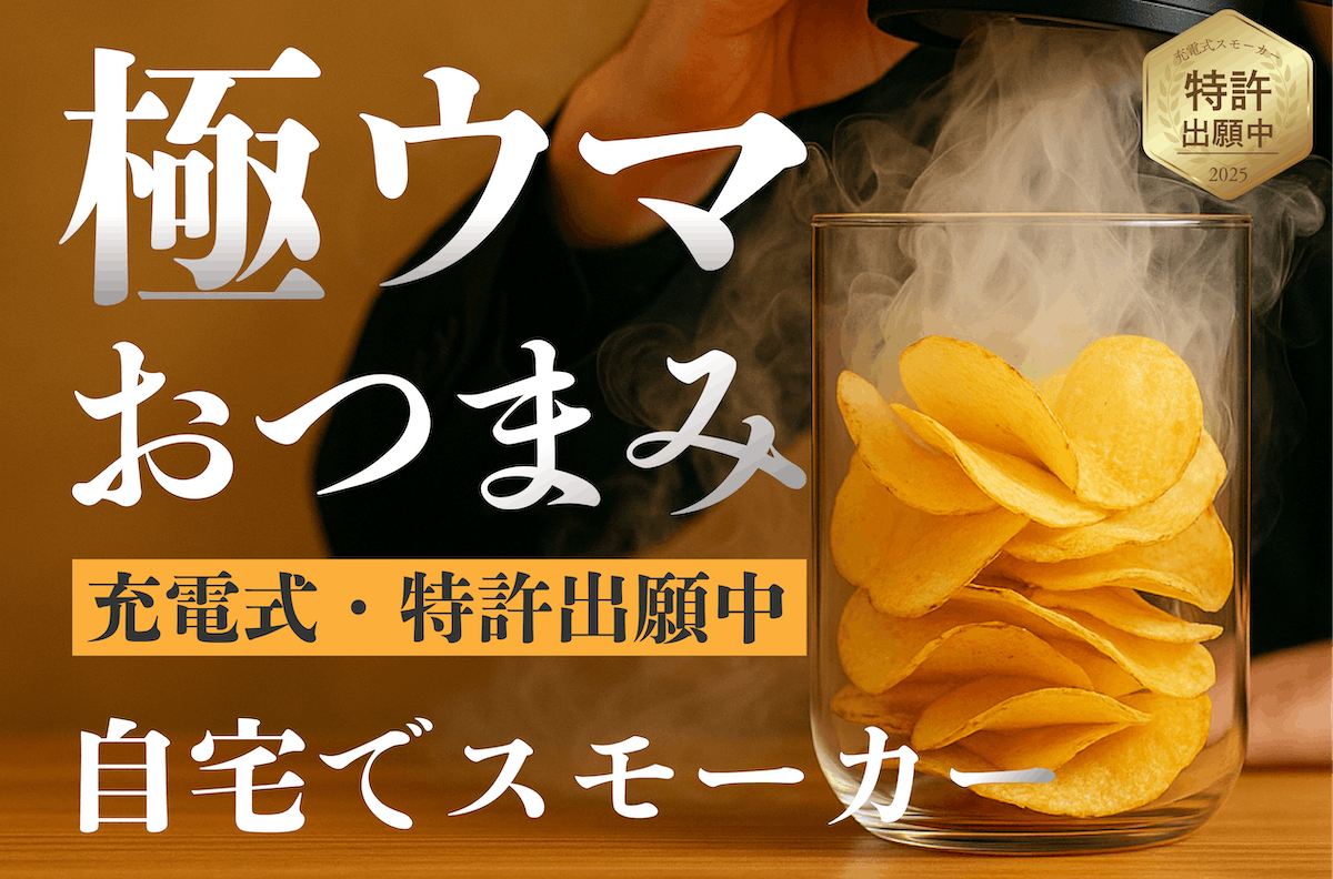 スモーキーな香りでハイボールやおつまみを一味変える、バーナー不要・USB充電式の手のひらサイズ燻製器が登場いたしました!