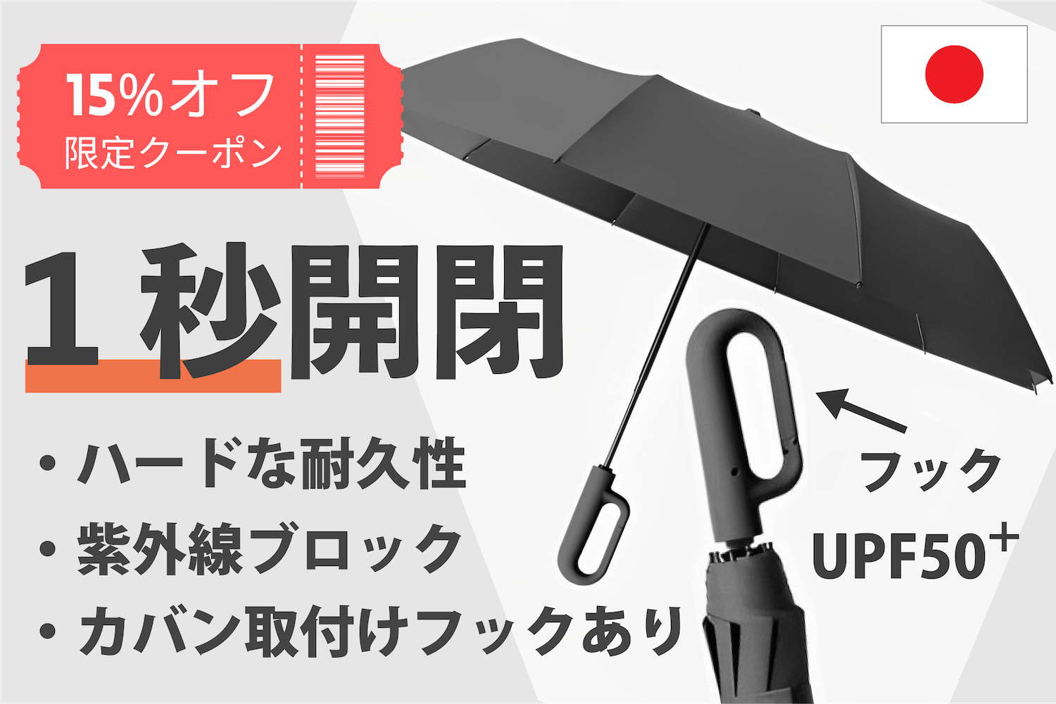 いよいよ一秒開閉の最強傘がスタートしました!お得な割引率が残っているうちに、ぜひ手に入れてみて下さい!----なお、レザーケースのリターンはケースのみの販売です。別途で傘をご購入いただく必要がございますのでご注意くださいませ。