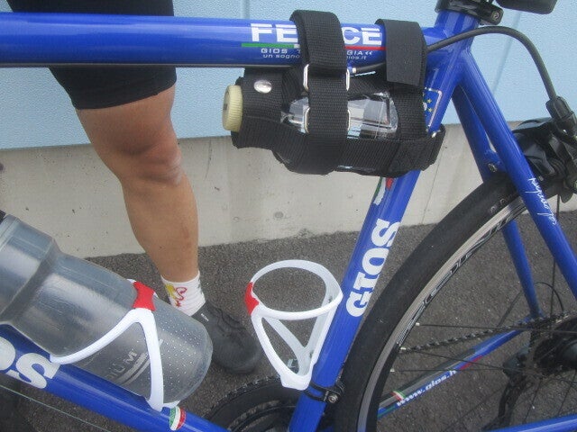 想定してますロードバイクへの取り付け方法は、トップチューブとシートチューブに取り付ける形になります。色々な箇所で試してみましたが、トップチューブとシートチューブ付近の箇所がロードバイクで『一番中心に近い』サドル下前1mくらいにあたる部分ですので、安定してトレーニング出来ました。