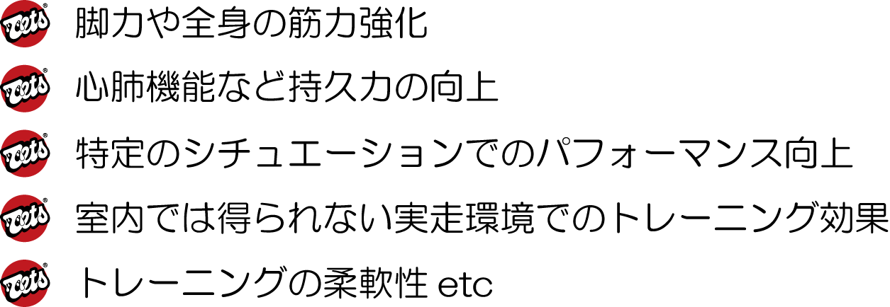 があげられます。通勤時、トレーニング時、フィットネス感覚なサイクリングなど、いつものライドに取り入れるだけで効果的なトレーニングが期待できます。