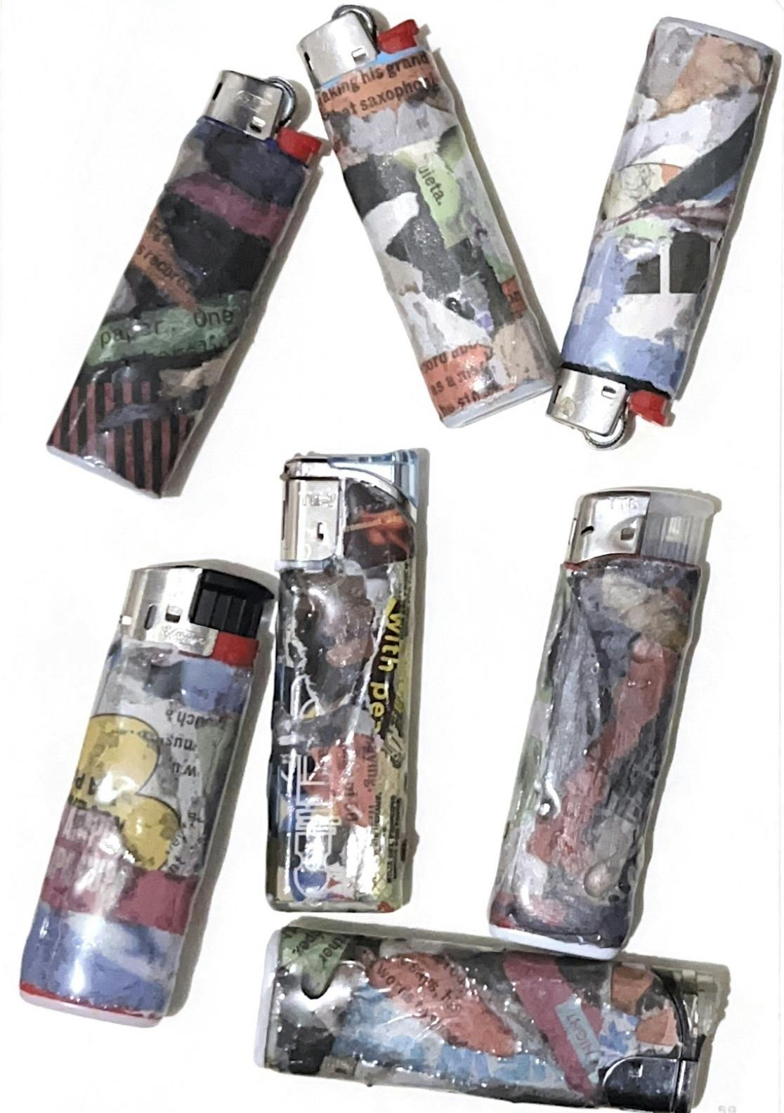 ↑例2:コラージュグッズ(ペンやライターなどコラージュとレジンコーティングを施した日用品をご準備いたします。ライターの場合PSCマークを取得した安全性に優れたものをお渡しいたします。)