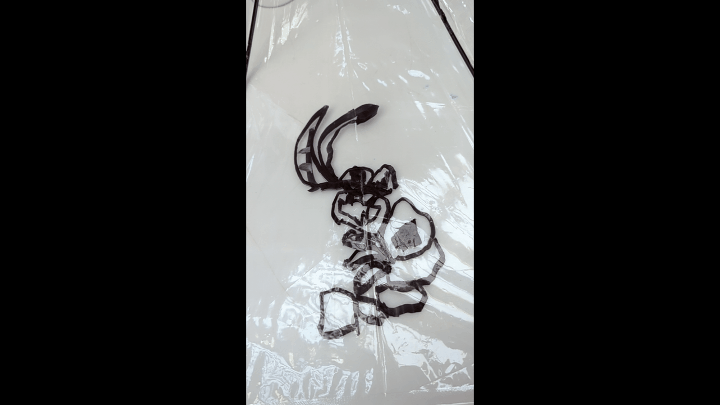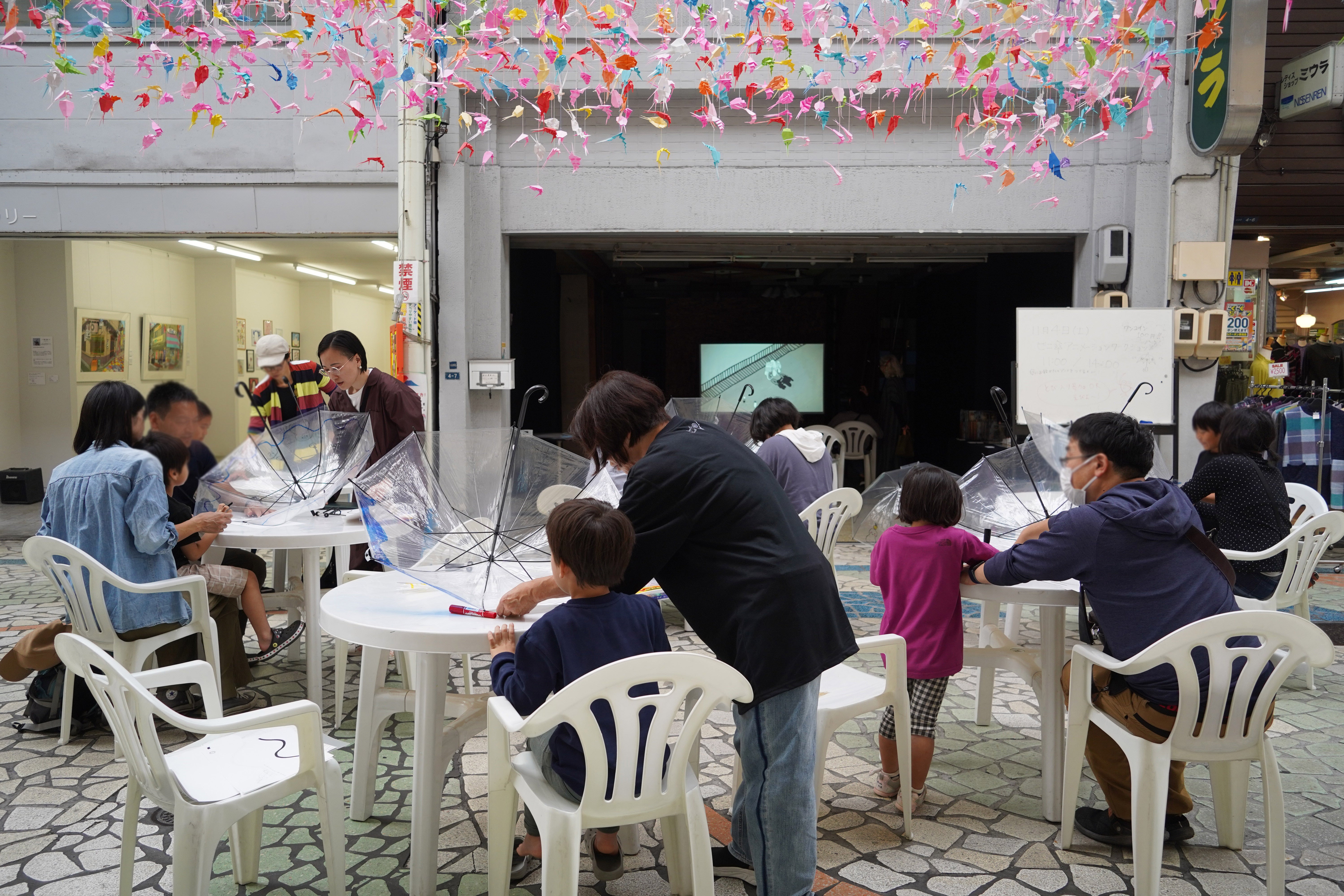 餅山田モチ世ワークショップ「ビニ傘お絵描きアニメーション」の様子