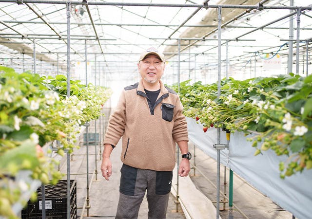 橘農園様のいちごは、無農薬で子どもたちも安心して食べられます。味も濃厚・形も良く、いちご狩りに海外からもお越しいただくなど、新たな観光スポットにもなっています。