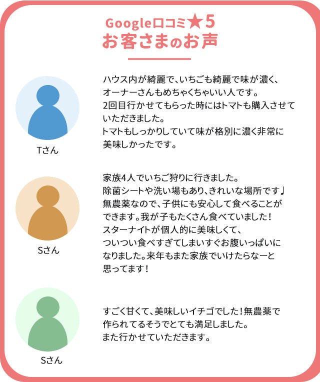 皆さまが笑顔で帰っていただけるような農園を目指しております