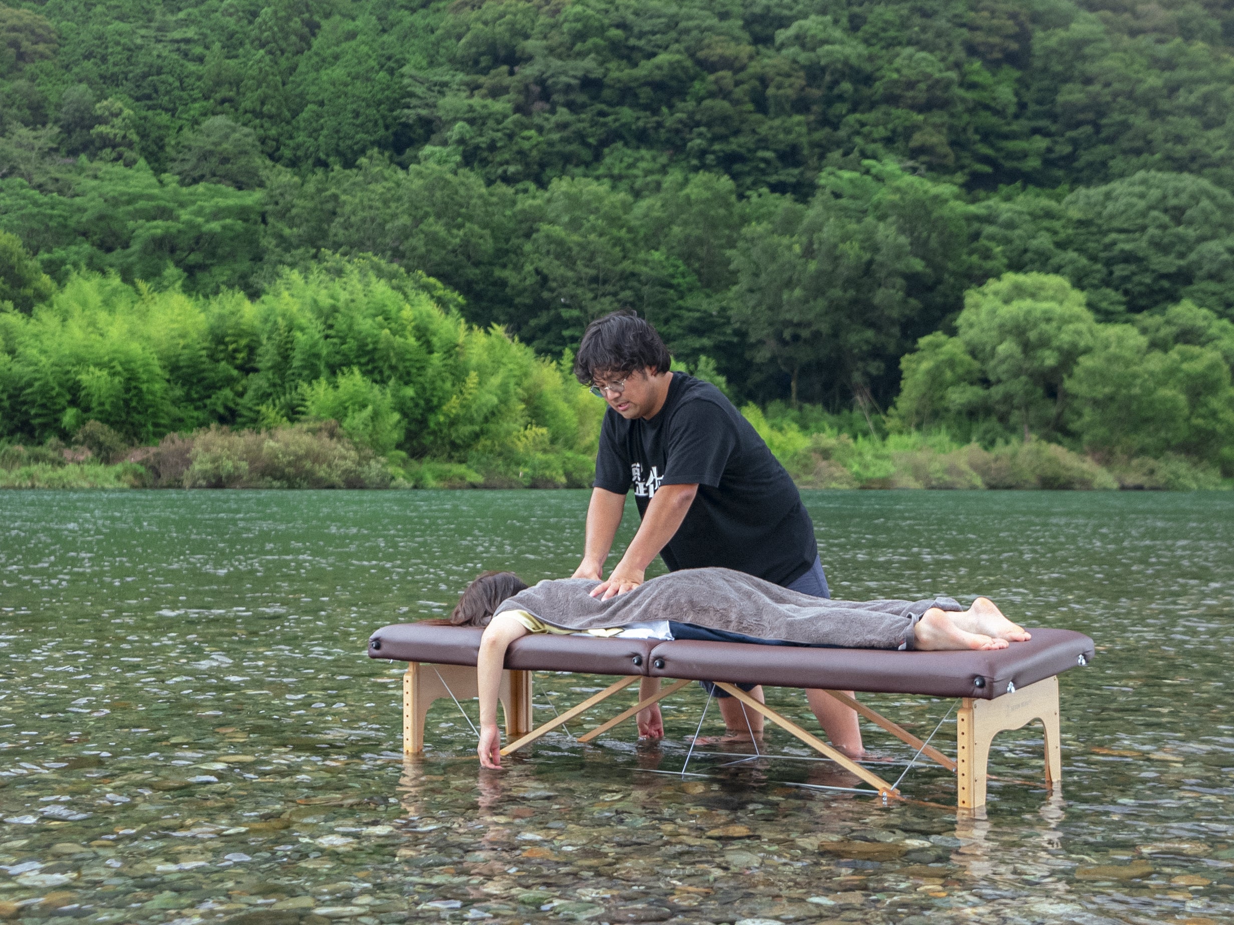 仁淀川での水上整体の様子