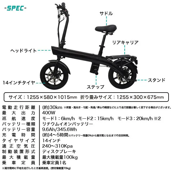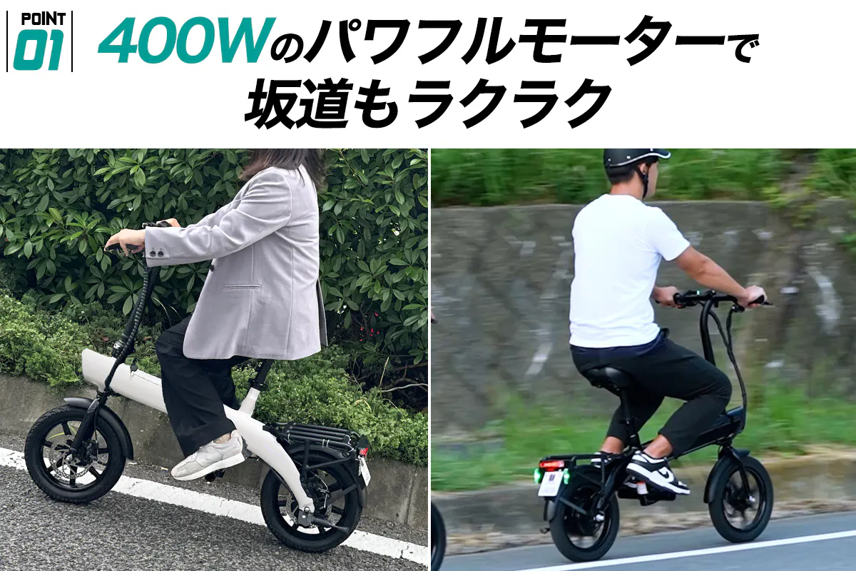 ・400Wのパワフルモーターで坂道もラクラク