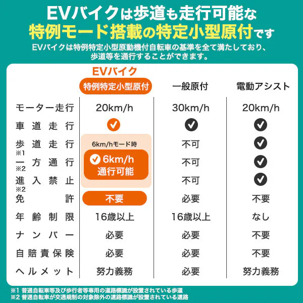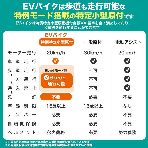 免許不要で車道&歩道走行が可能