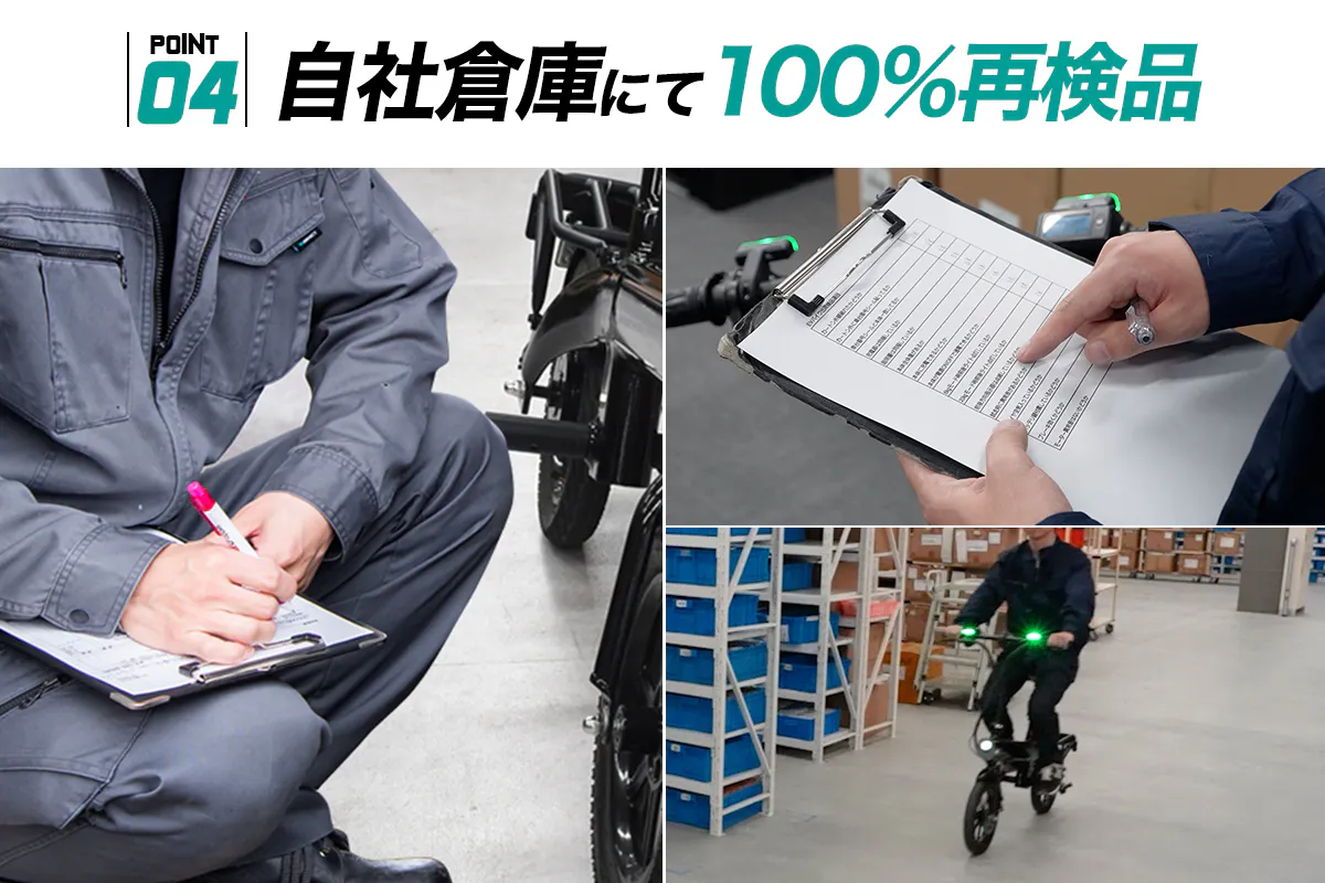安全にご乗車いただけるように発送前に弊社の自社倉庫にて担当の整備士が1台1台丁寧に再検品を行っており、初期不良0を目指しています。