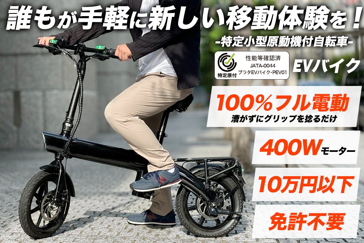 皆様こんにちは!株式会社プラタです。【100%電動】歩道も車道も自由自在!EVバイクで新しい移動体験を!本日、EVバイクのクラウドファンディングを開始いたしました。本製品の主な特徴は下記になります。・400Wのパワフルモーターで坂道もラクラク・ディスクブレーキと大径14インチの雨天走行型タイヤを採用・脱着式バッテリーで室内でも充電可能・自社倉庫にて100%再検品・パーツの手配や修理等、購入後もサポート本バイクは、自転車型で安定した乗車が可能で安全にご使用いただけるだけでなく、パーツ手配・修理等の購入後のサポートもしっかり行うので安心してご支援いただける製品となっております。お得な10万円以下となるリターンは、数量限定となっておりますのでお急ぎください!!!どうぞよろしくお願いいたします。