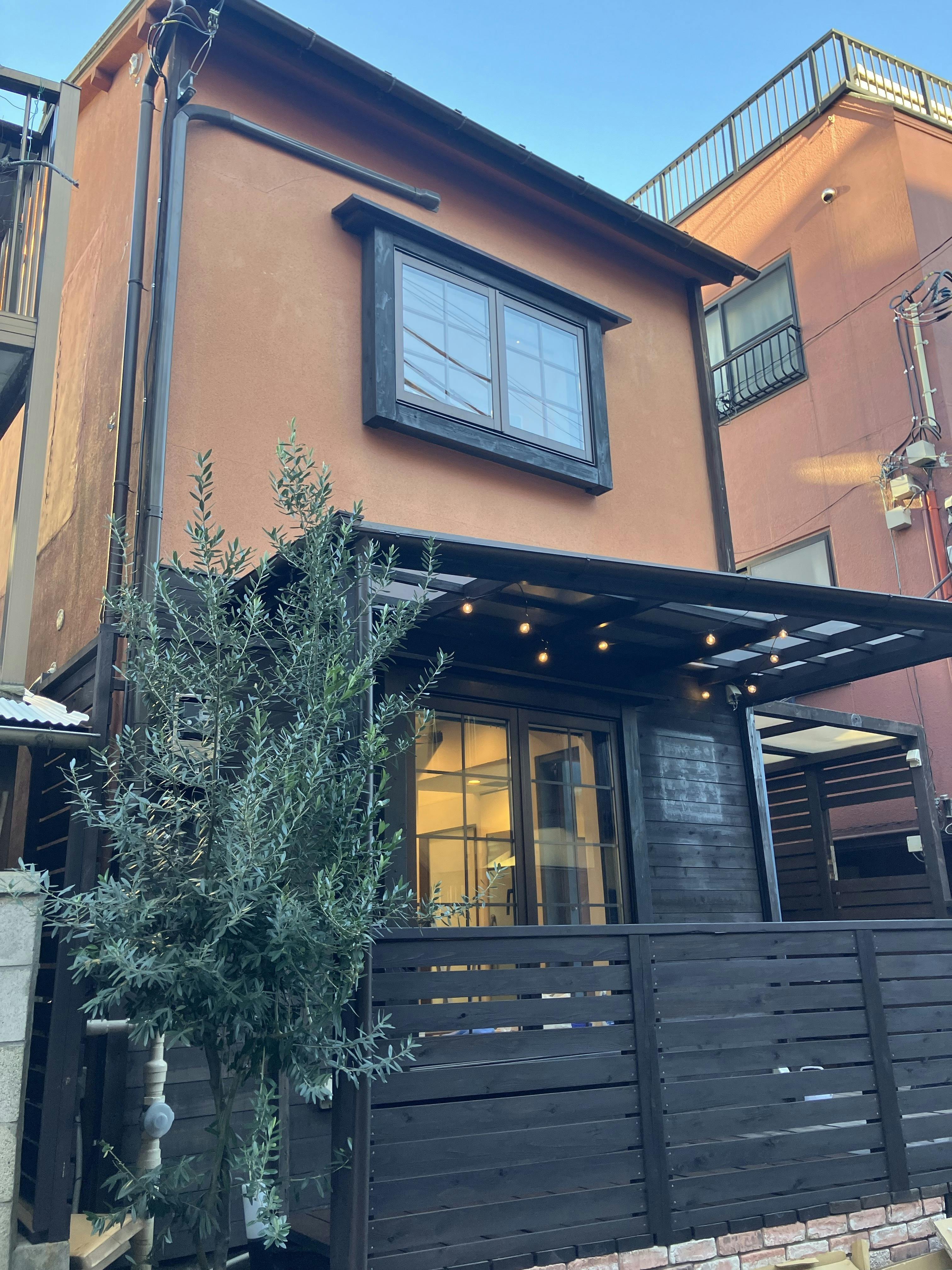 神楽坂の賑やかな商店街から1本裏通りへと入った静かな通りに佇んでいて、近くには公園があり子供たちが遊んでいます。赤城神社も近く、ご近所の方がゆっくりと散歩をするような、抜け道のような落ち着いた通りに立っています。温かみのあるテラコッタ色の外壁の一軒家は、70年以上ここで街を見続けていたのです。ここなら日常に寄り添いつつ、非日常を味わえる。気軽さと安らぎの両立ができるかもしれないと感じられました。