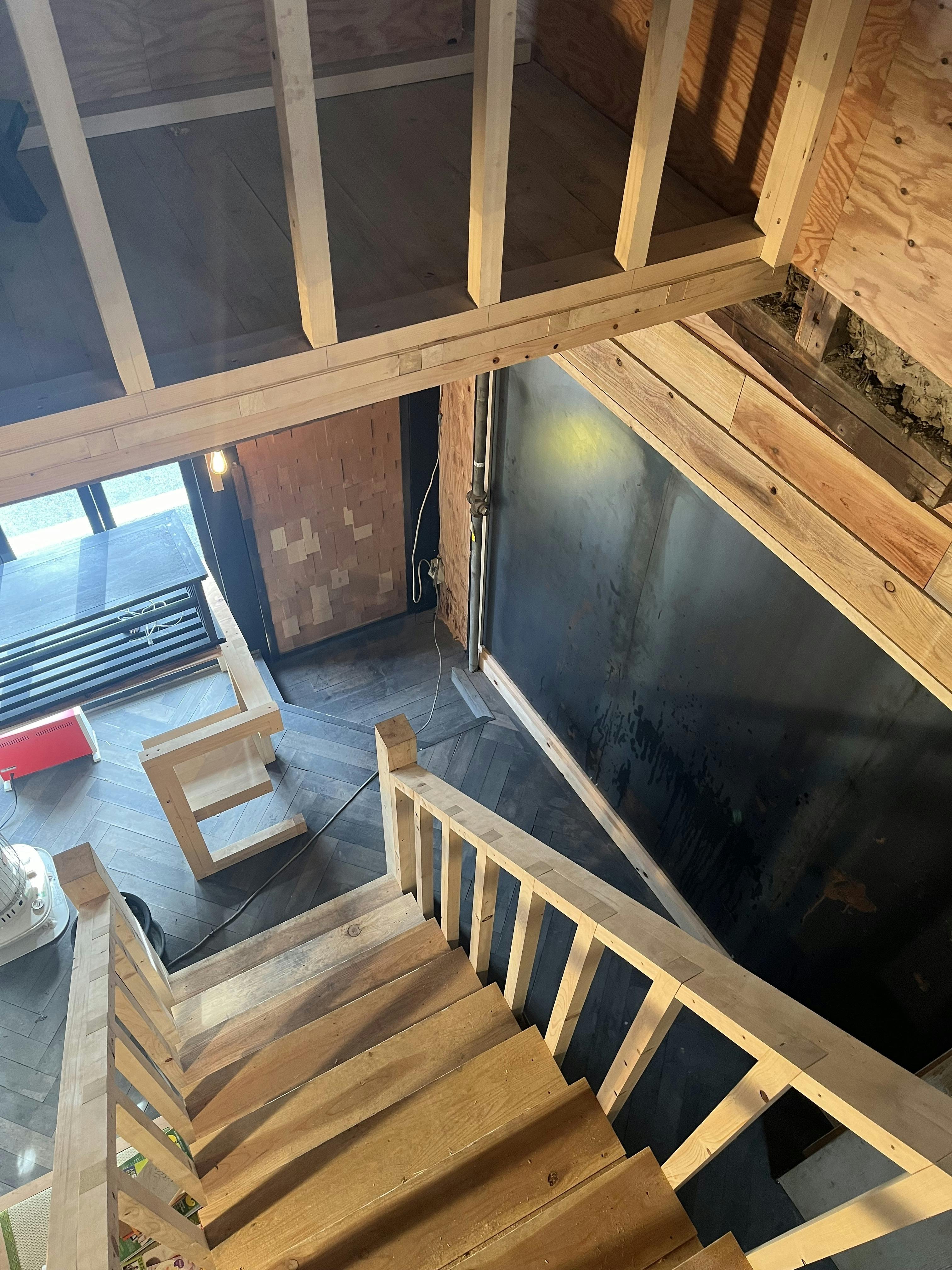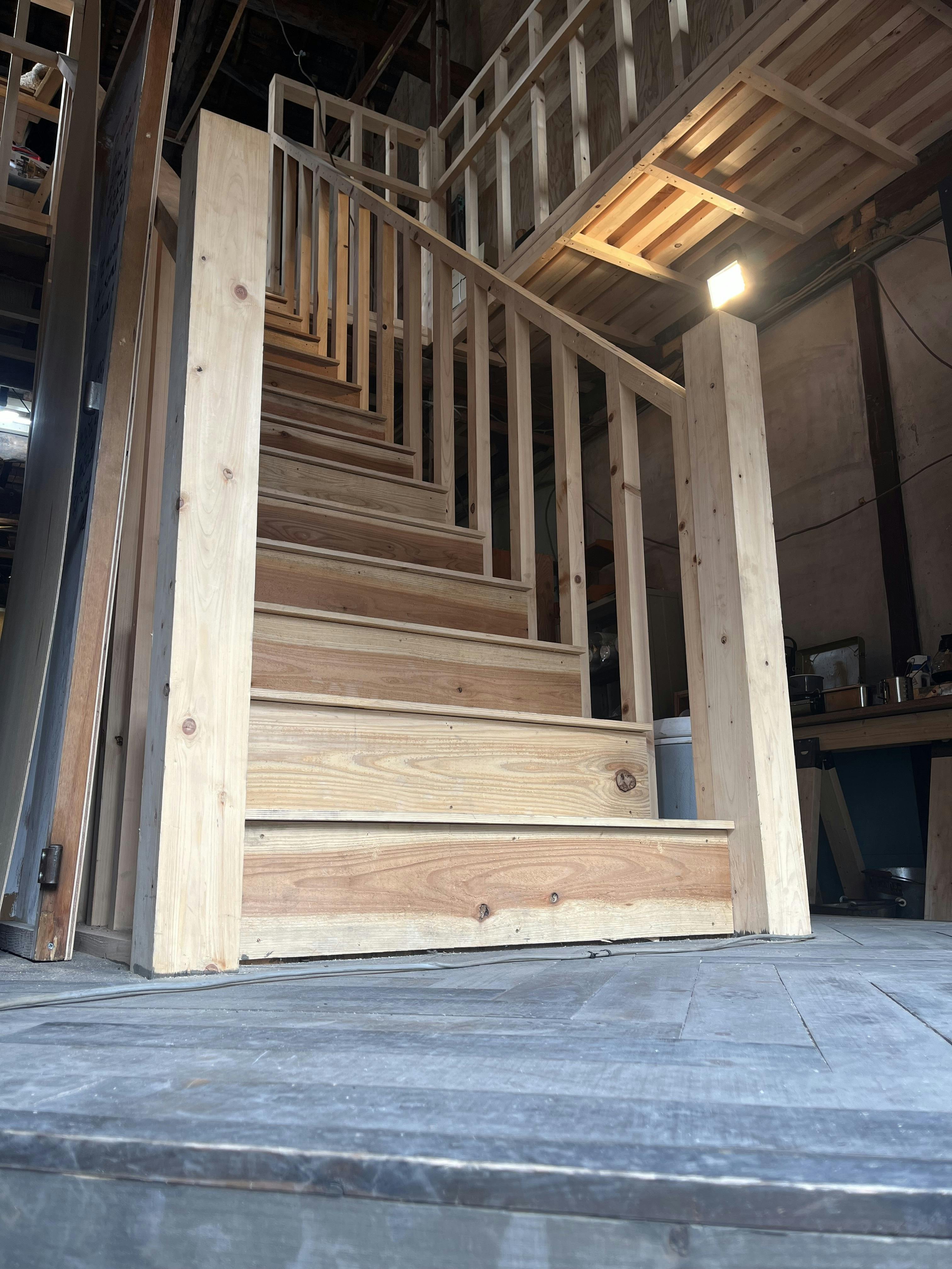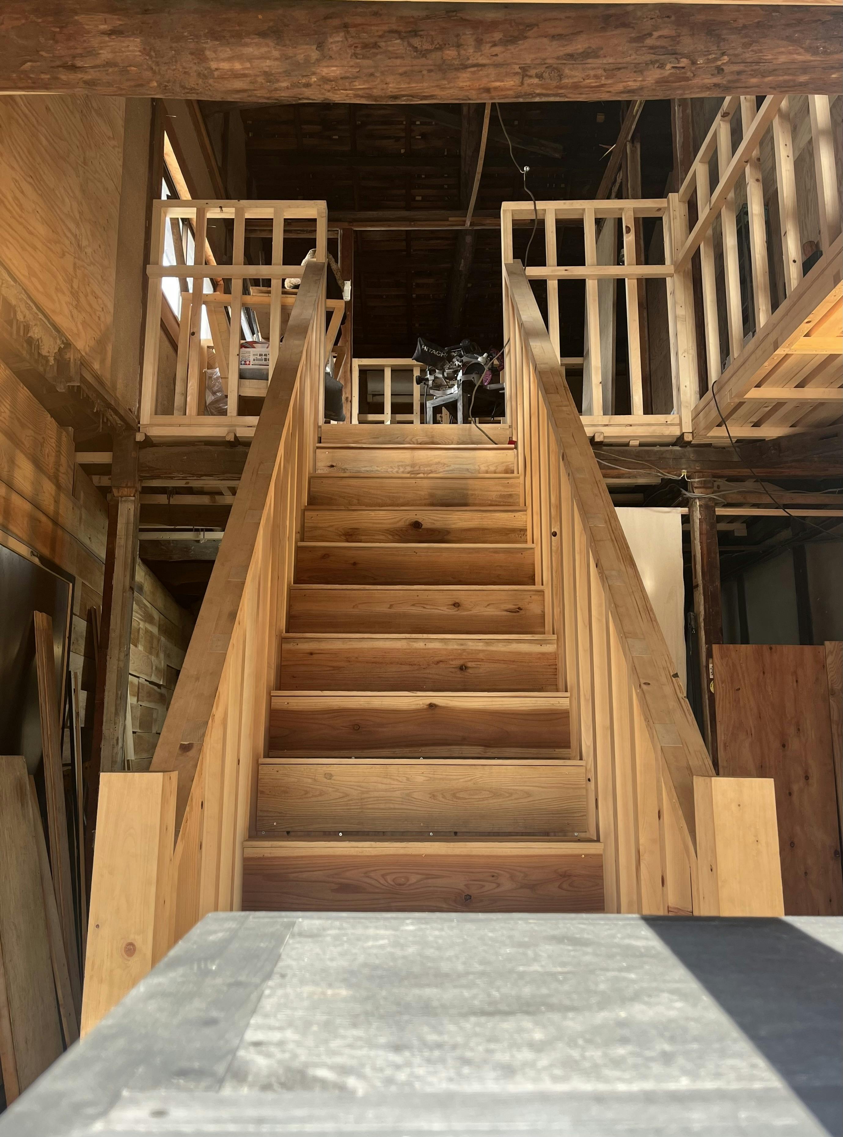 ドアを開けて店内に入ると、部屋の中央にでーんと階段が設置されています。ものすごい存在感!