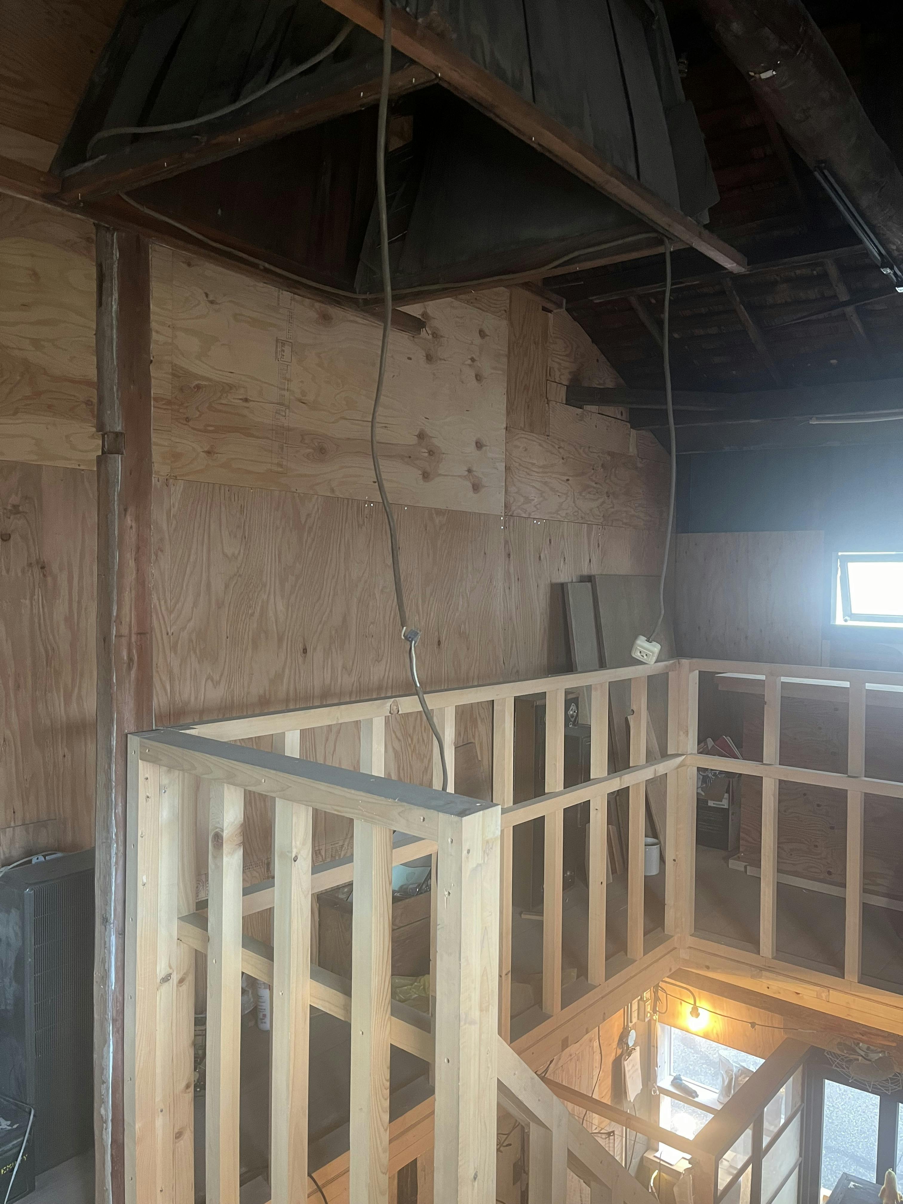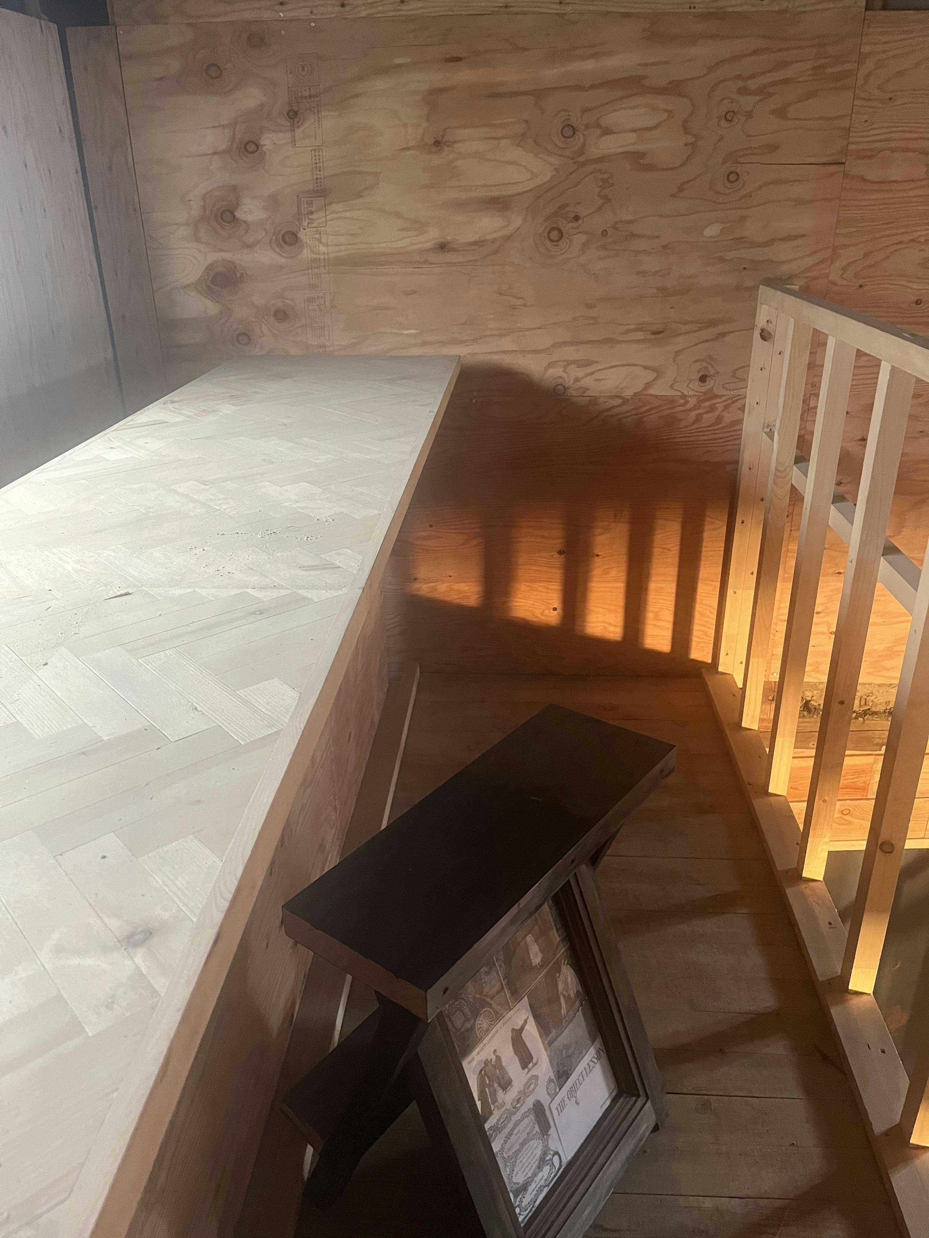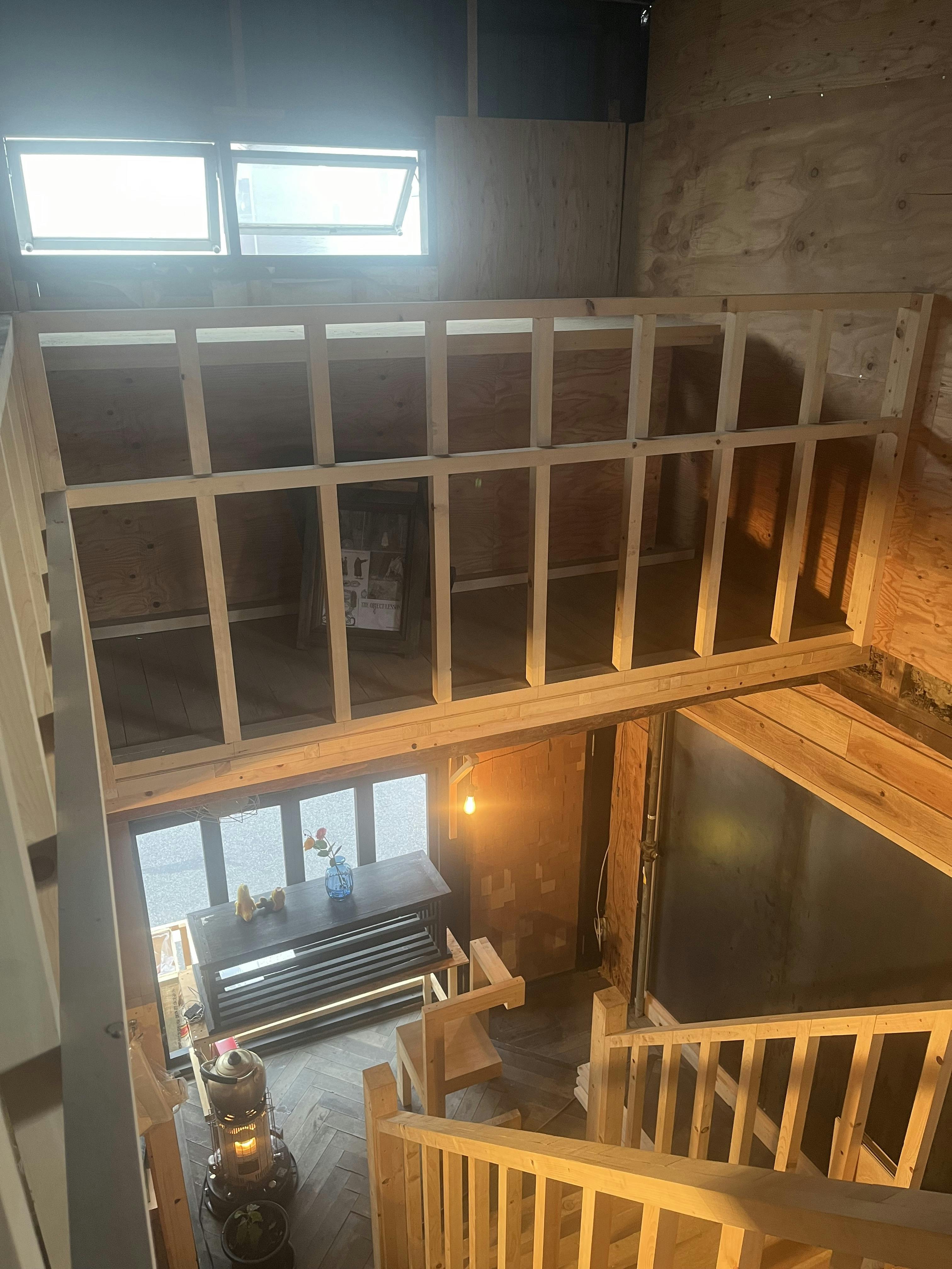 店内中央にどかんと備わった階段。