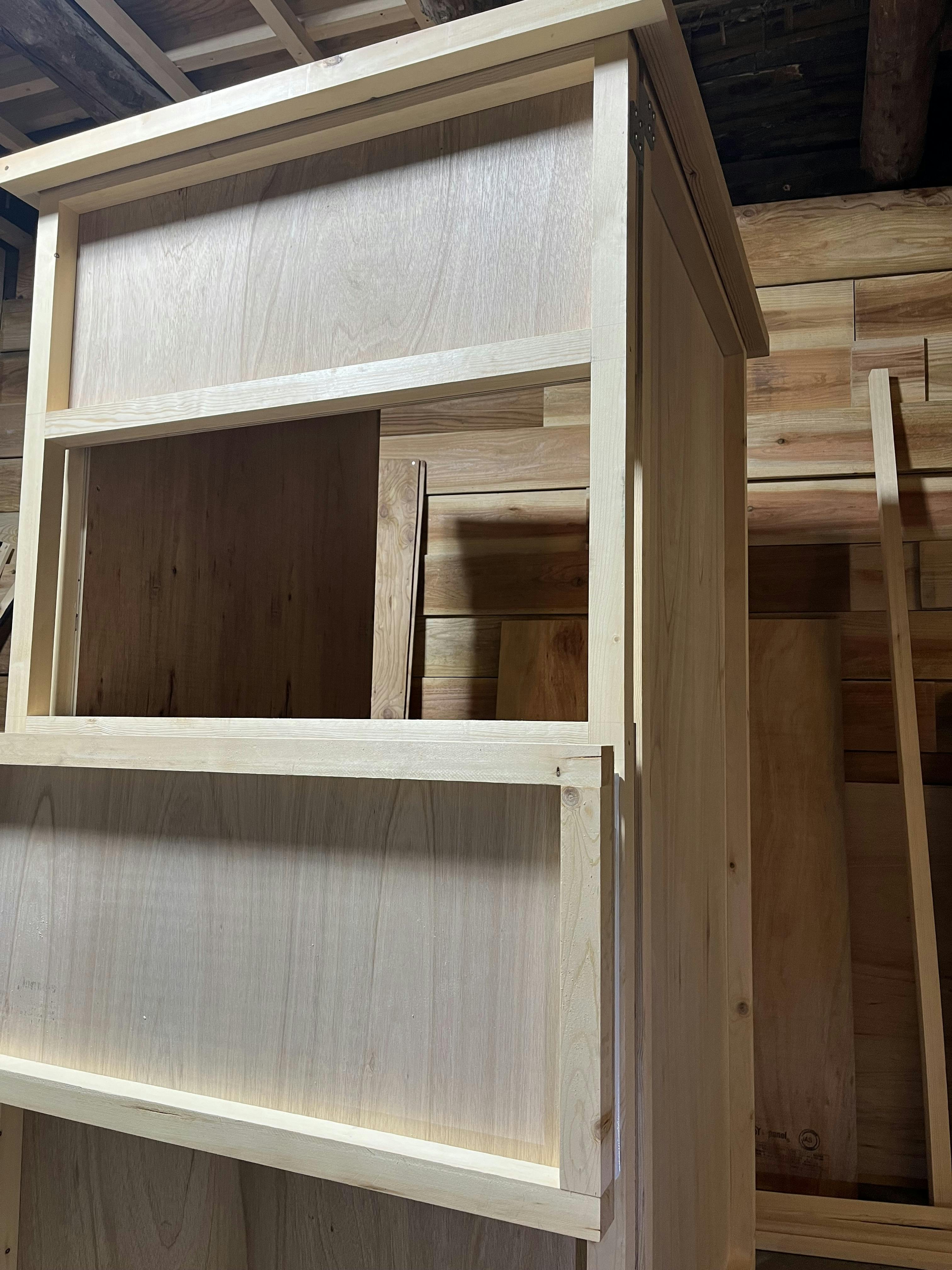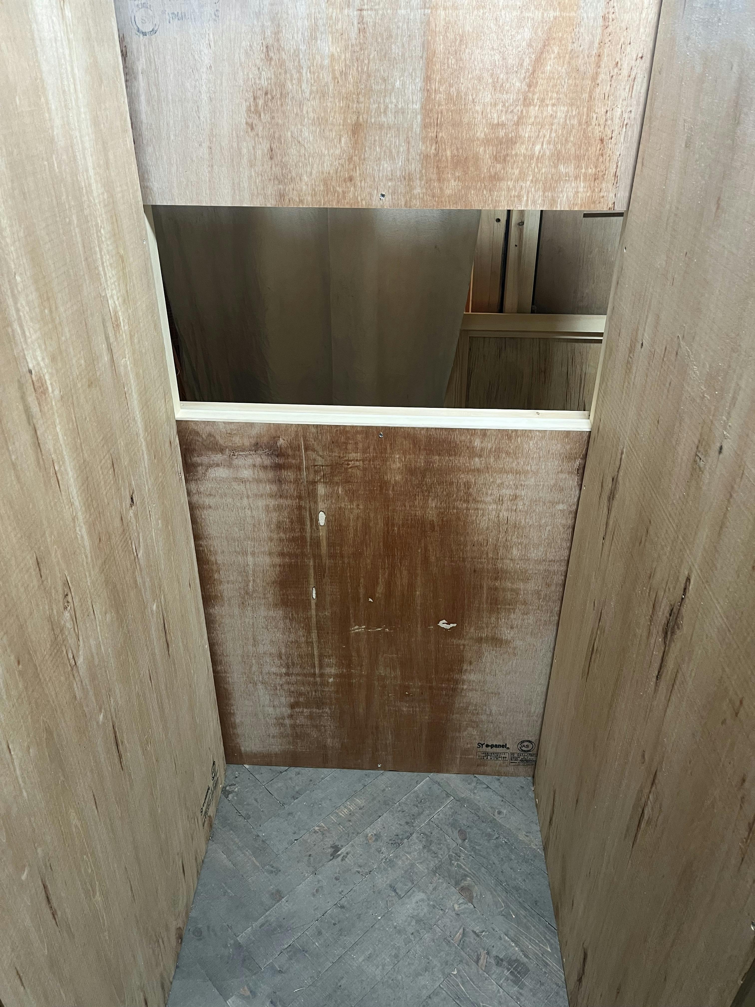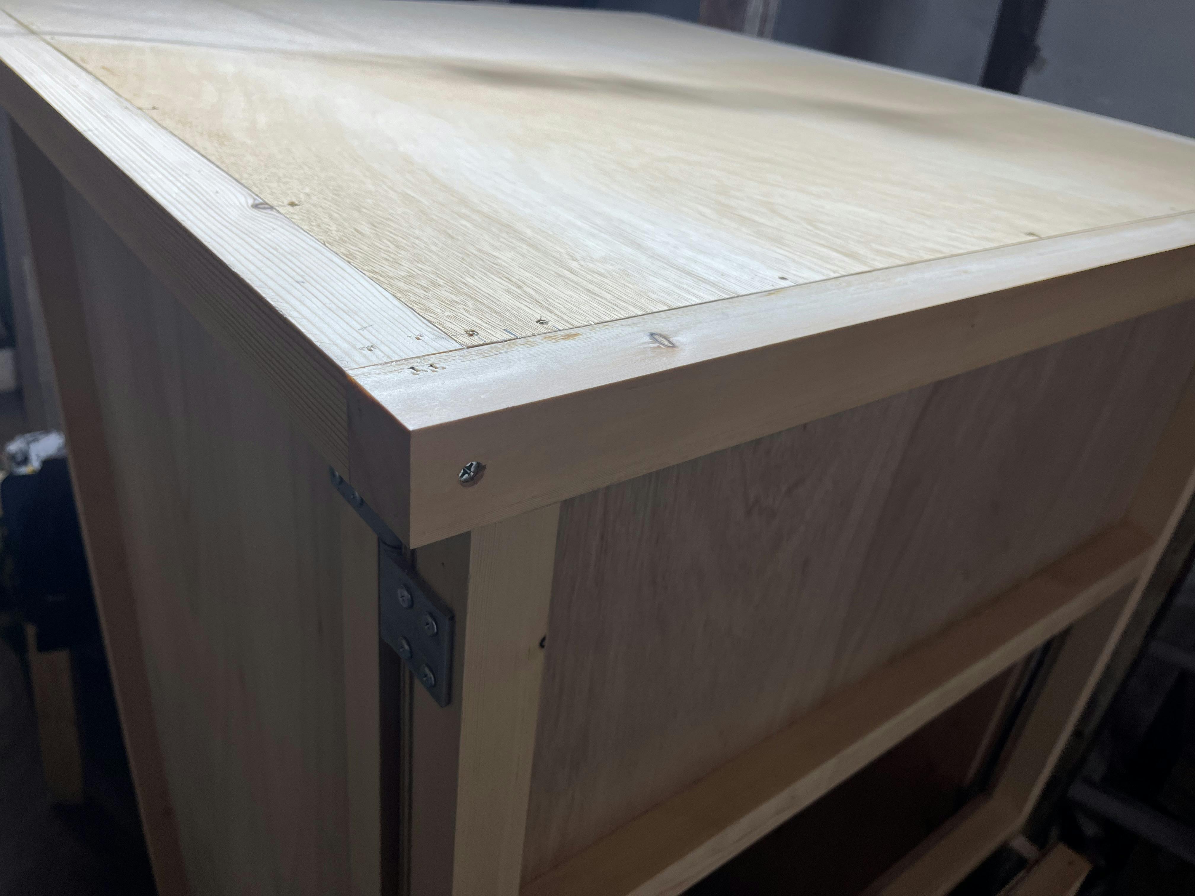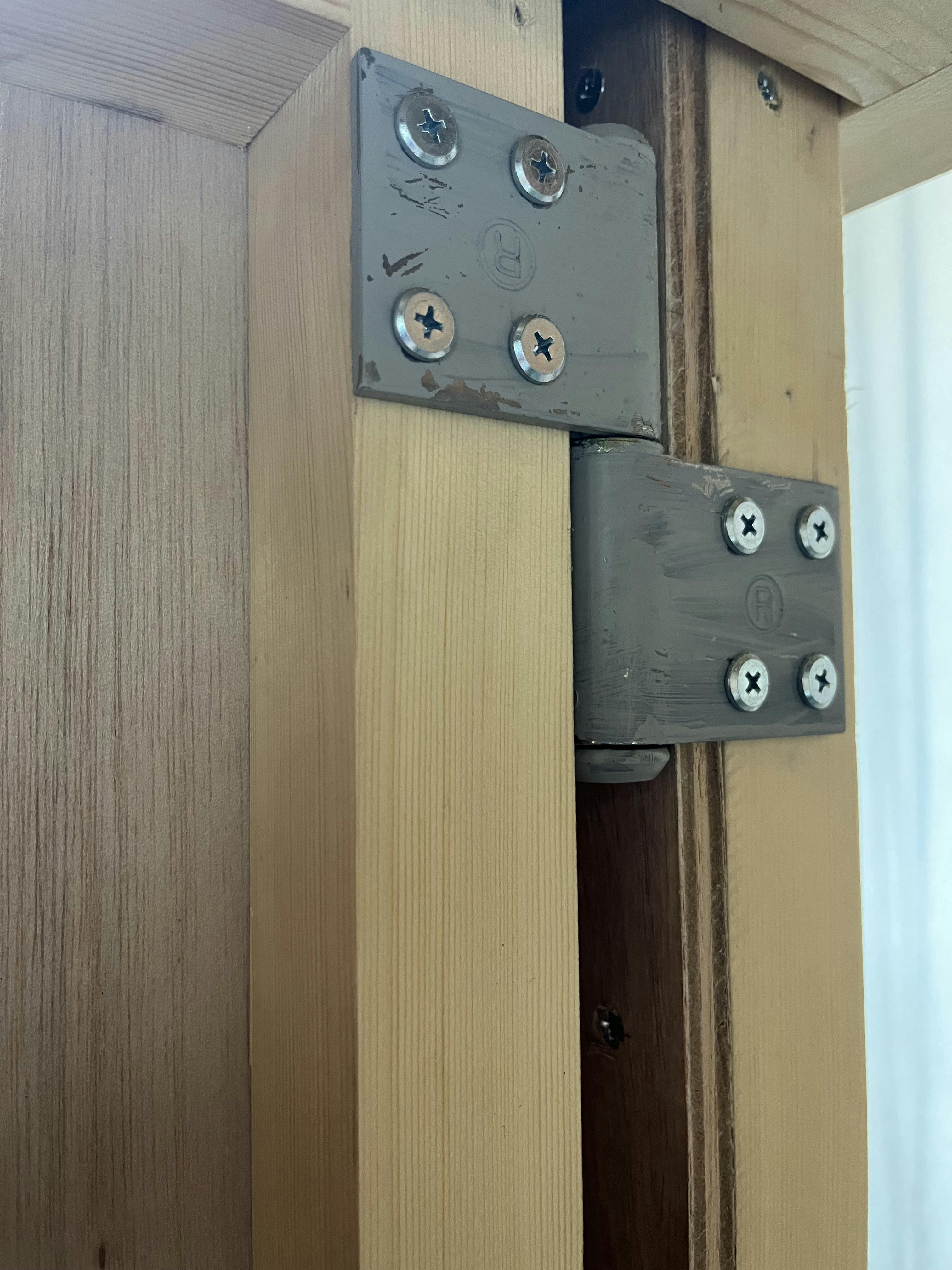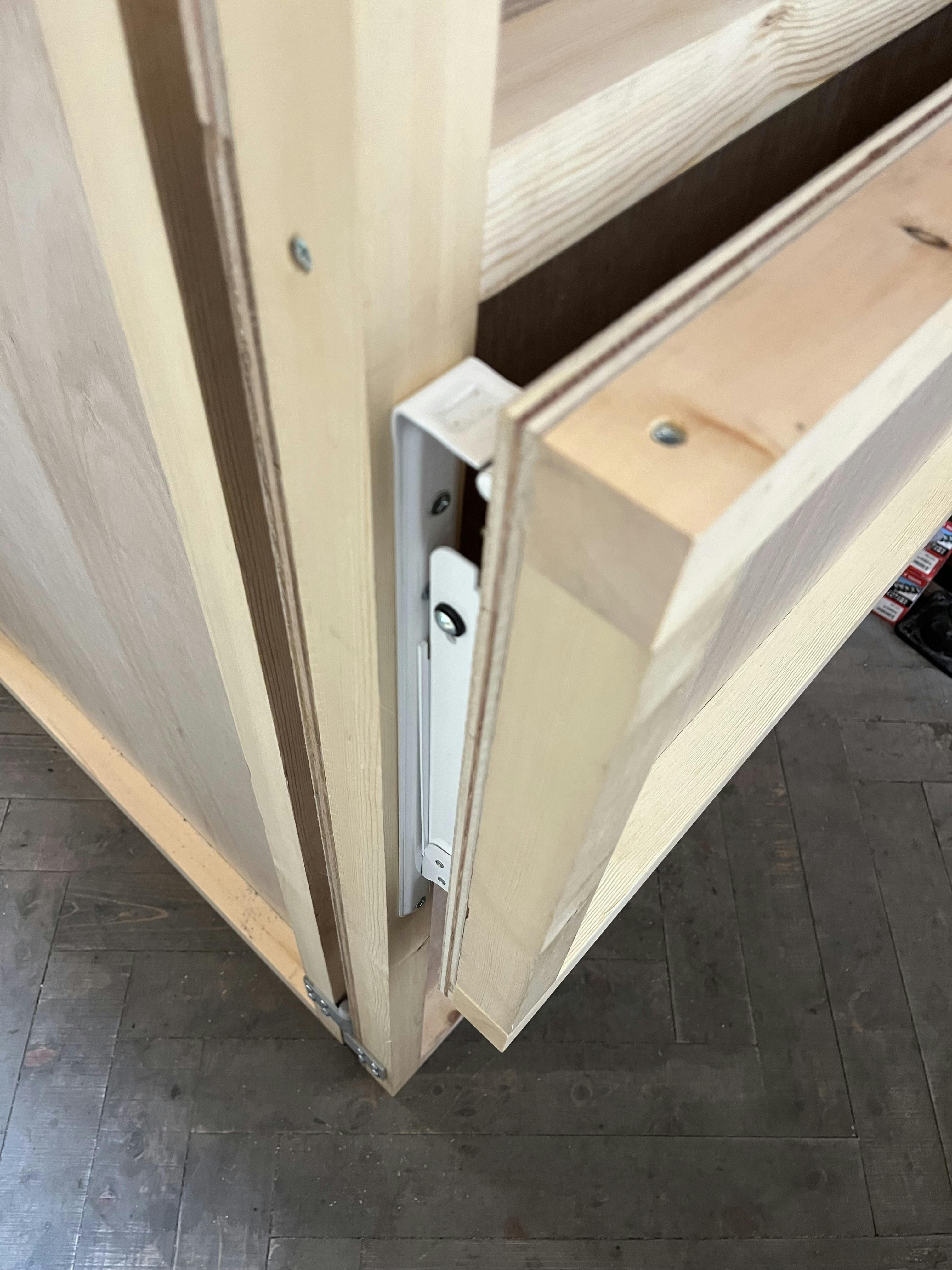 ヒンジ部分です。左右の壁面はそれぞれに、ヒンジによって正面の板材と接続されています。