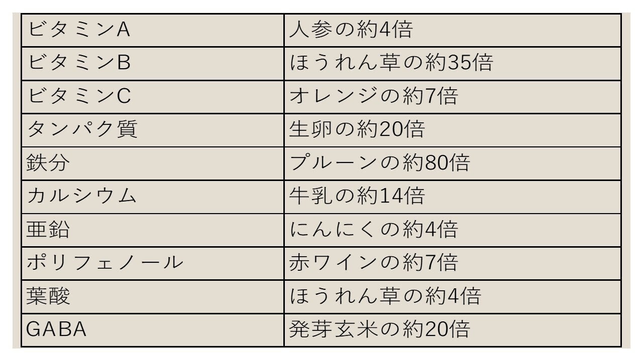 亜熱帯が原産地の植物で【奇跡の木】と呼ばれるワサビノキ科の植物でスーパーフードと呼ばれています。90種以上の栄養素には、多種のビタミン、ミネラル、アミノ酸を含み、それらは抗炎症物質、抗酸化物質、殺菌浄化作用を促してくれる為、高血圧、糖尿病、アンチエイジング、抗がん作用、美肌効果、体臭改善、腸内環境の改善、ダイエット等300以上の症状の改善を促してくれます。そして、その含有量も他の食物と比較しても非常に高く優れている事がわかります。