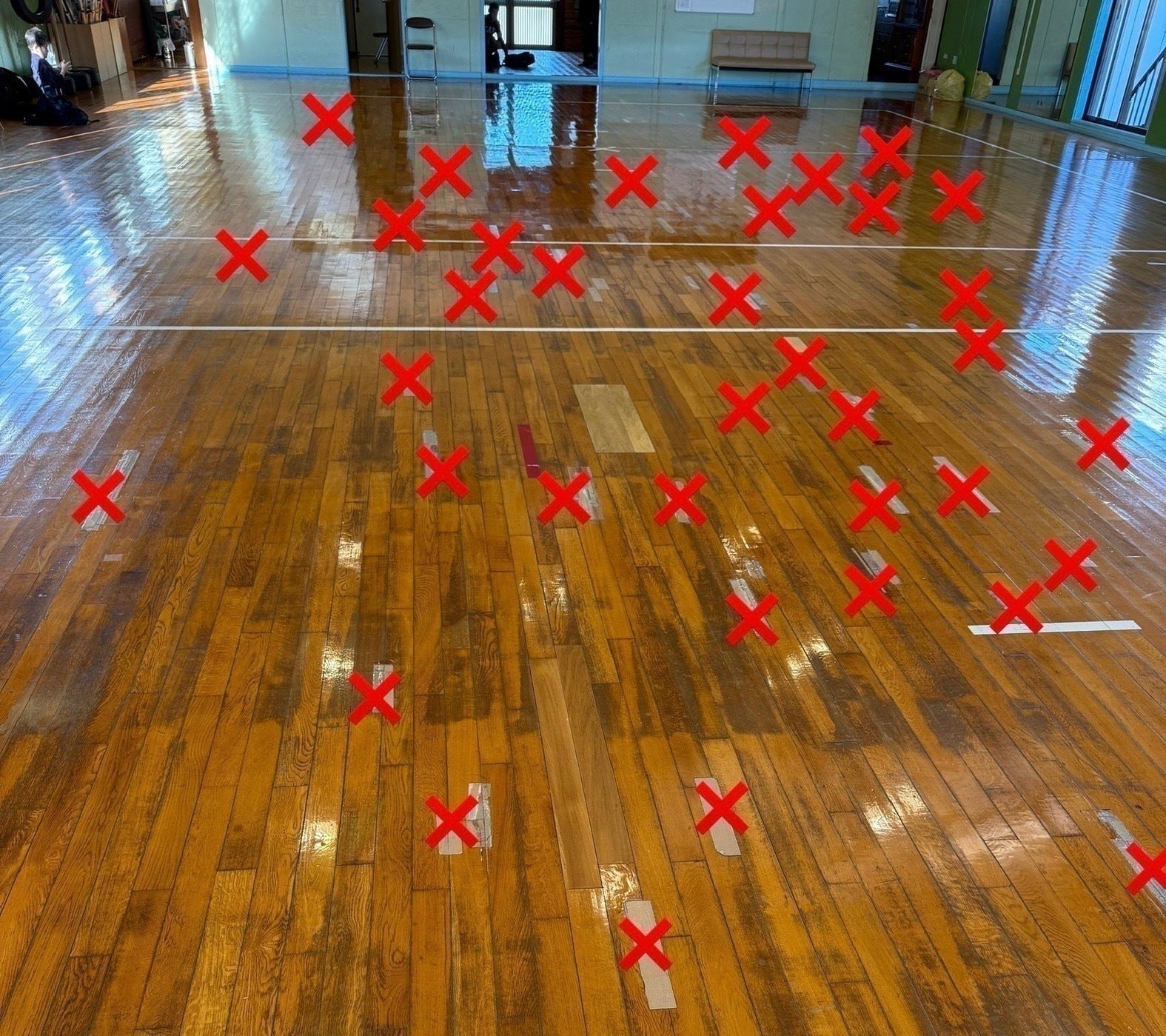 ありがたいことに門下生が増えて大所帯になったことにより、道場の床の劣化がかなり激しくなってしまい、今や200か所以上の補修箇所がある大大大ピンチな状況です。