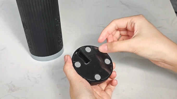 マグネット式のベースを採用しており、再利用可能なステッカーと滑り止めマットが付属しています。これにより、カップをしっかりと固定し、どこに置いても倒れたり滑ったりする心配がありません。