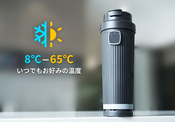 加熱温度は最大65℃まで設定可能で、朝のコーヒーや午後のお茶をどこでも温かく楽しめます。