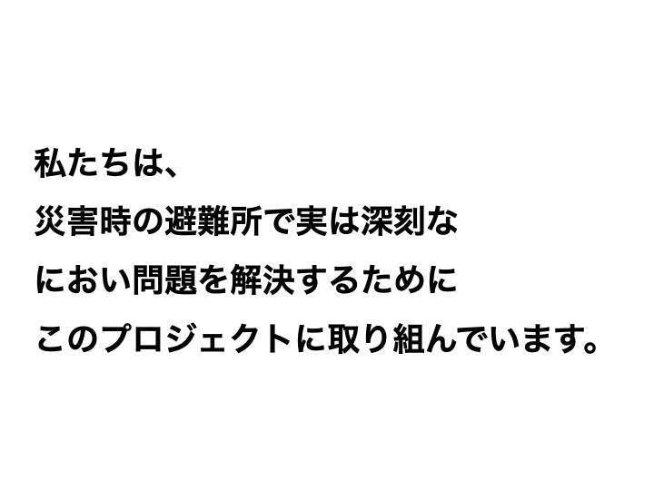 私たちは、災害時の避難所で実は深刻なにおい問題を解決するためにこのプロジェクトに取り組んでいます。