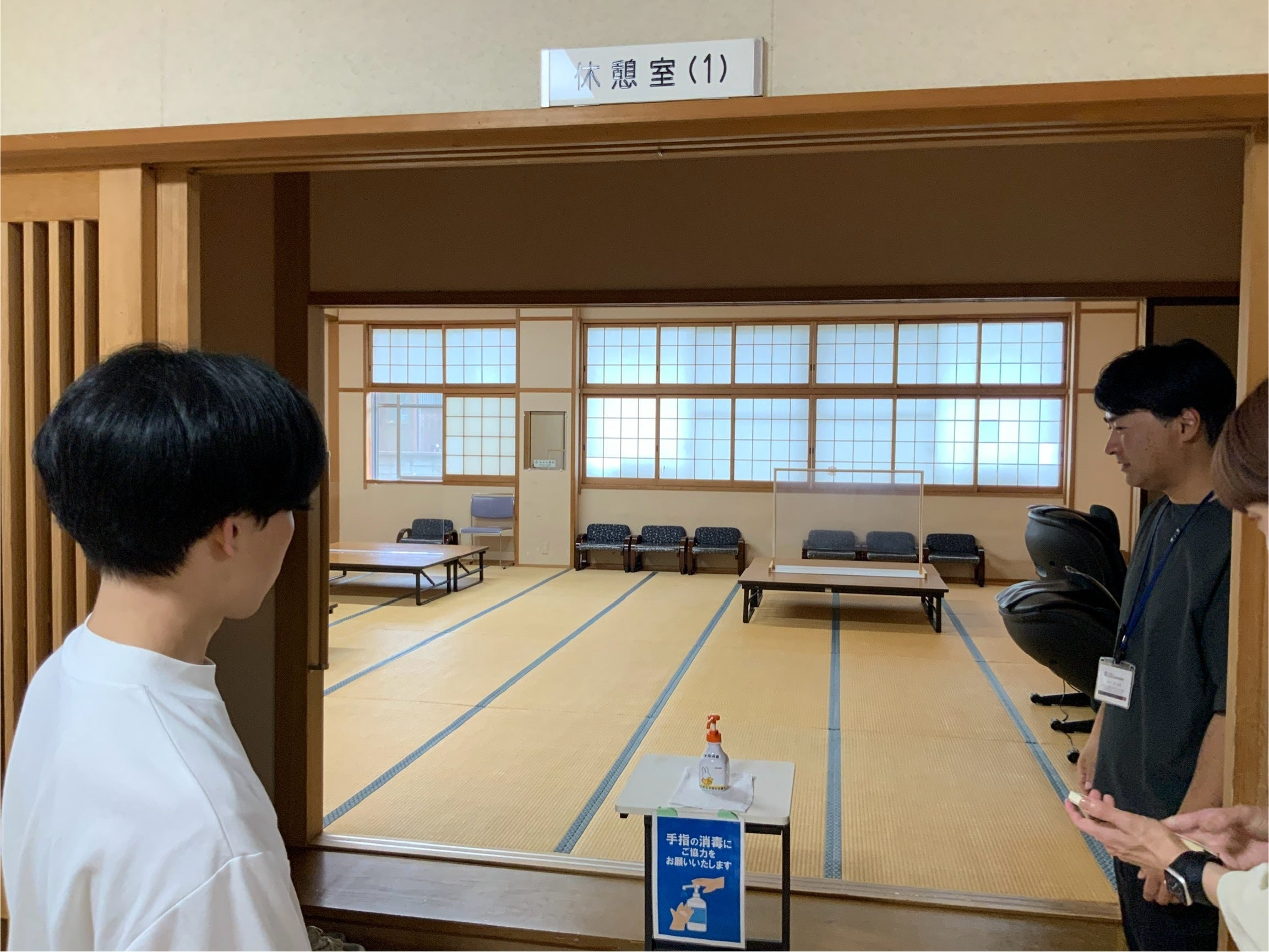 そこで、注目したのが、利用者の皆さんがくつろがれている休憩室にあった下駄箱。こういう場所なら、いつもどおり靴を脱いで仕舞う動作の中で、効果を実感していただけるのでは?