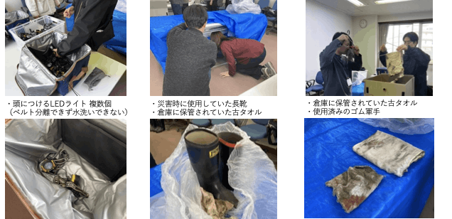 そこで、12月には再度訪問して、災害時に気になっていたにおいが付着した現物、様々なアイテムを対象にした実験を開催しました。