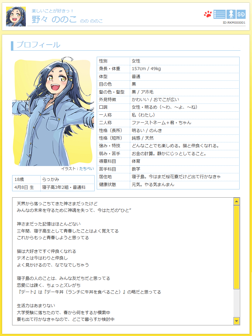 プロフィールができたら、次はそのキャラクターに【イラスト】をつけてあげたいですね。