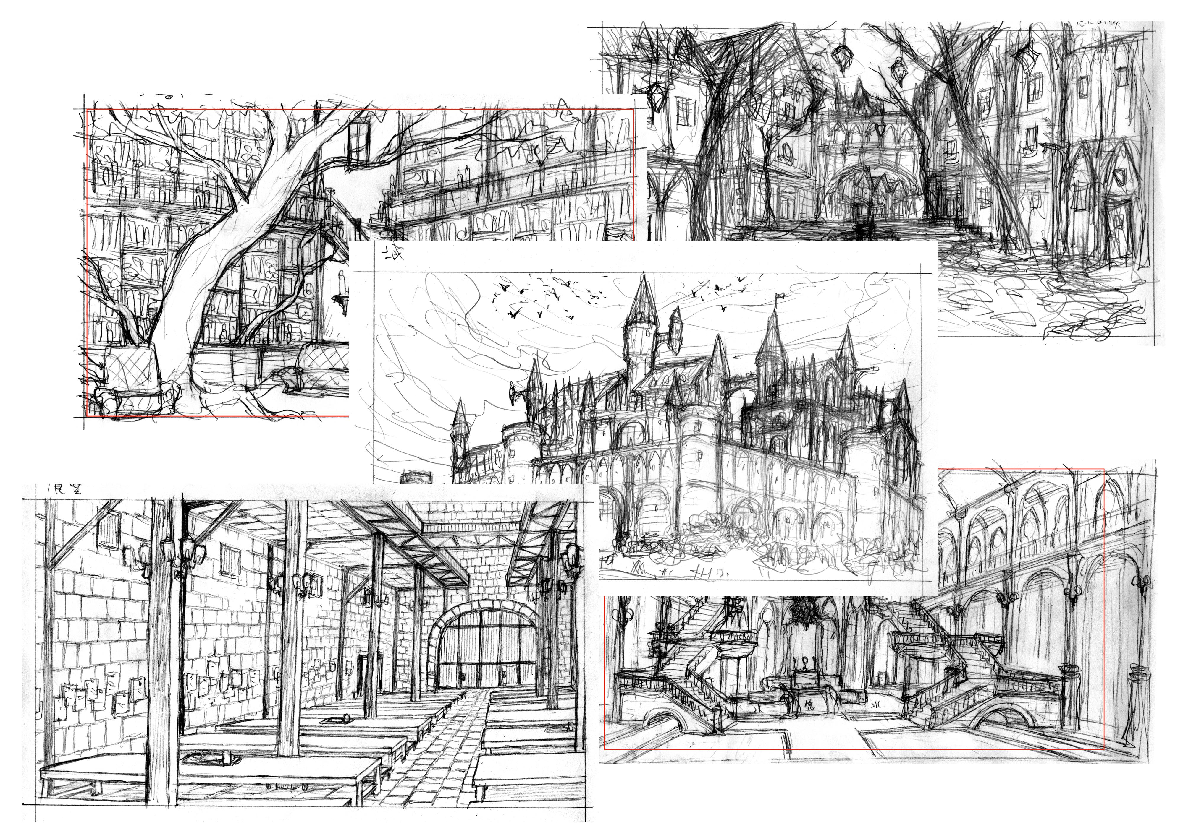 キャラクターの舞台となる世界観をビジュアル化するべく、背景を描いたイラストの準備をしています。