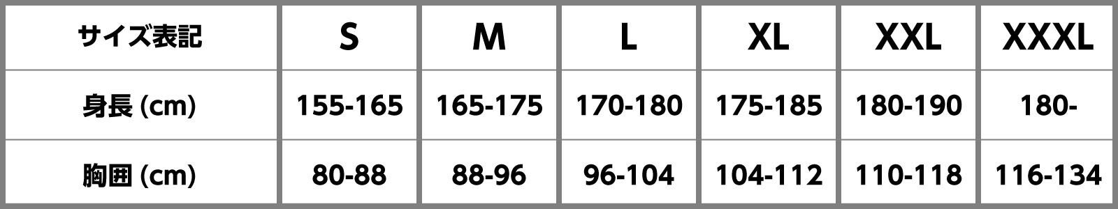 ▼Tシャツのサイズは下記の表よりお選びいただけます。