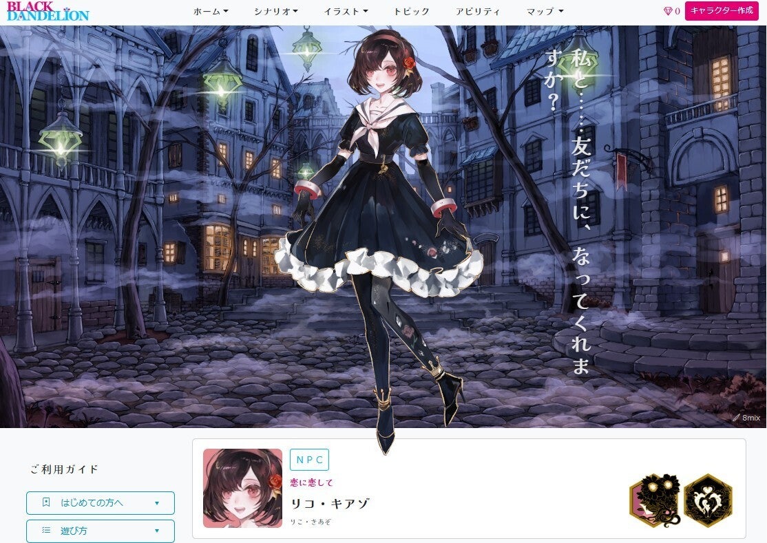 新作「BLACK DANDELION」オープンに先駆け、サイトにアクセスし、キャラクターを作成できます。