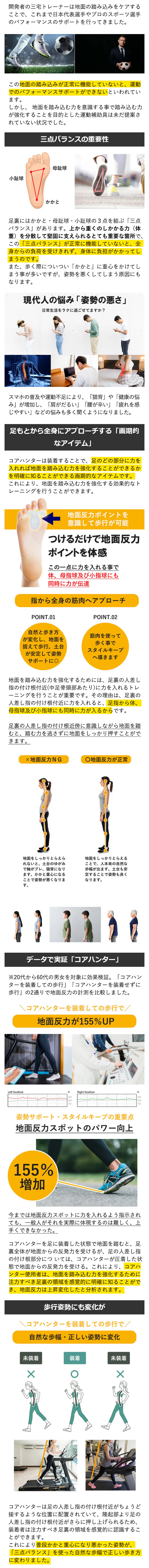 株式会社ラシーヌは、創業13年を迎えます。この13年の間に様々な変化に対応し、揺るがない信念と高い品質を保持しながら成長を続けて参りました。商品にこだわり全国から美容雑貨・便利雑貨等を仕入れています。スマホの普及や運動不足から現在人の大きな悩みである「姿勢の悪さ」をサポートできるものはないかと思い、様々な専門家の意見を聞きながらこの商品を販売する事に至りました。この度販売する商品で、今迄感じなかった「地面を捉える力で得られる地面反力パワー」を体感実感して頂きたいと思います。今後商品の品揃えを更に充実せさていこうと考えております。