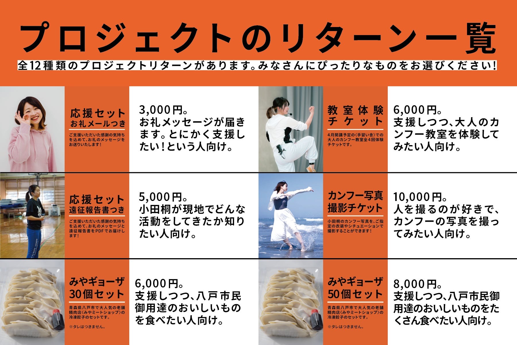 全12種類のリターンをご用意しました!