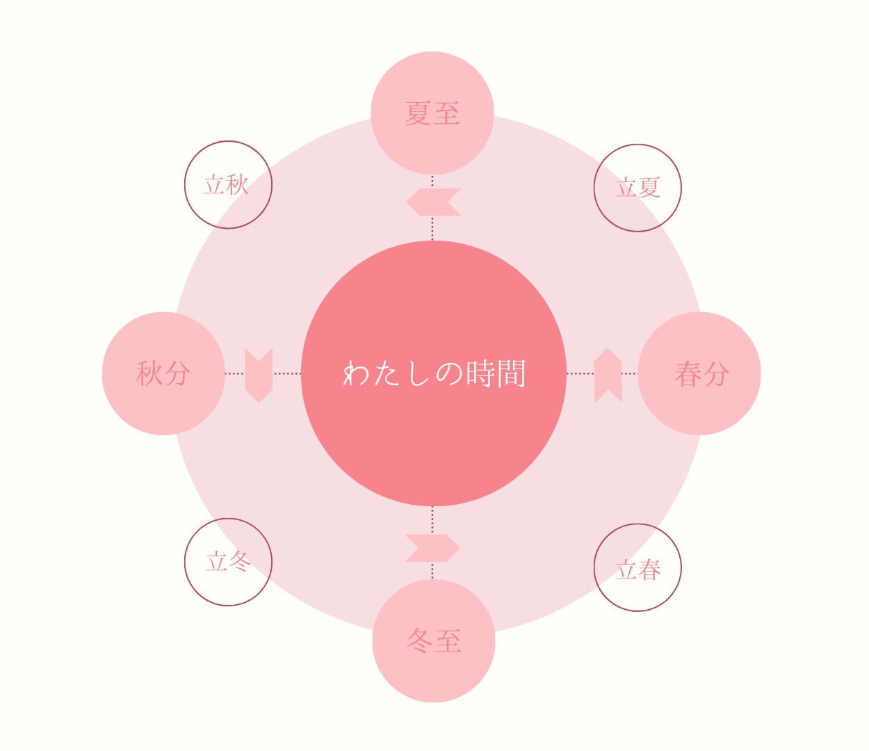 季節の真ん中である春分、夏至、秋分、冬至という四節と、季節の始まりである立春、立夏、立秋、立冬という四立、合わせて8回の節目にお届けする定期便で