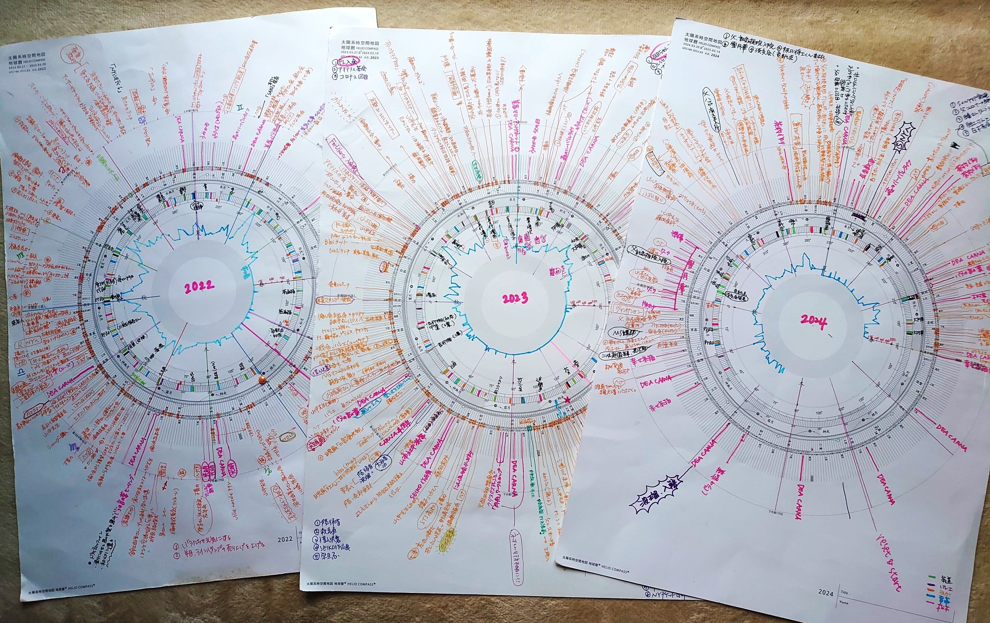 記入したワークシートを眺めると、その年に大きな出来事が何が起こったか、お味噌や梅干しをいつくらいに仕込んでいるのか、茶道のお稽古は1年間何のお点前を学んできたのか、などが一目瞭然です。