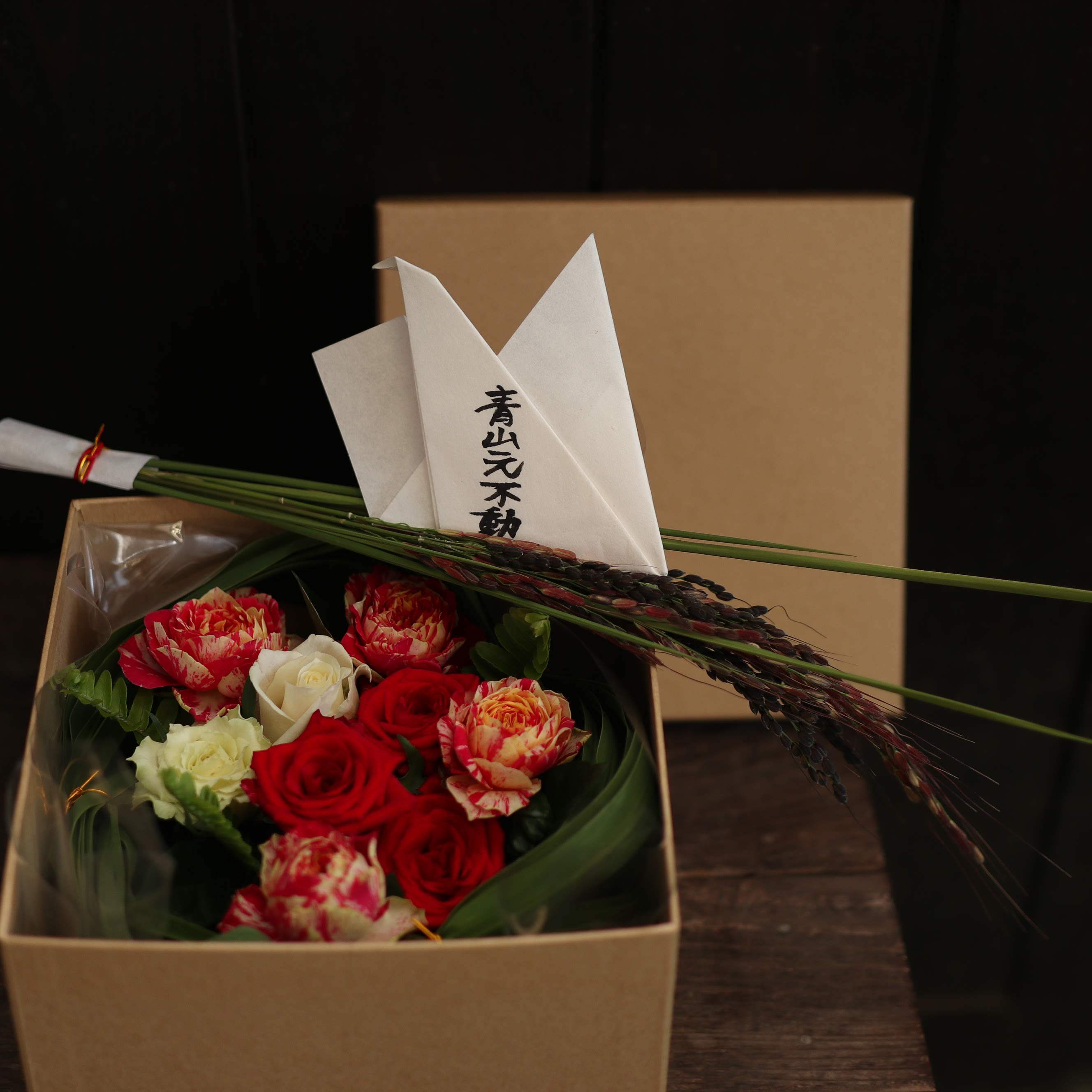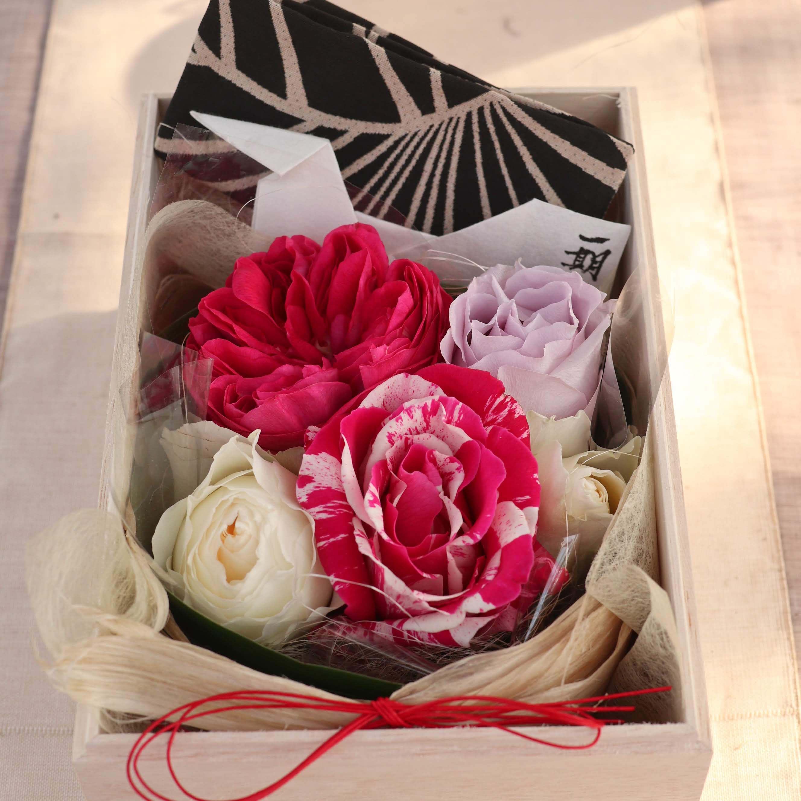夫婦二人+スタッフ1人での小さな経営のため、限定数になりますが、その時に良い状態の薔薇たちを、心をこめて花束にし、送らせていただきます。