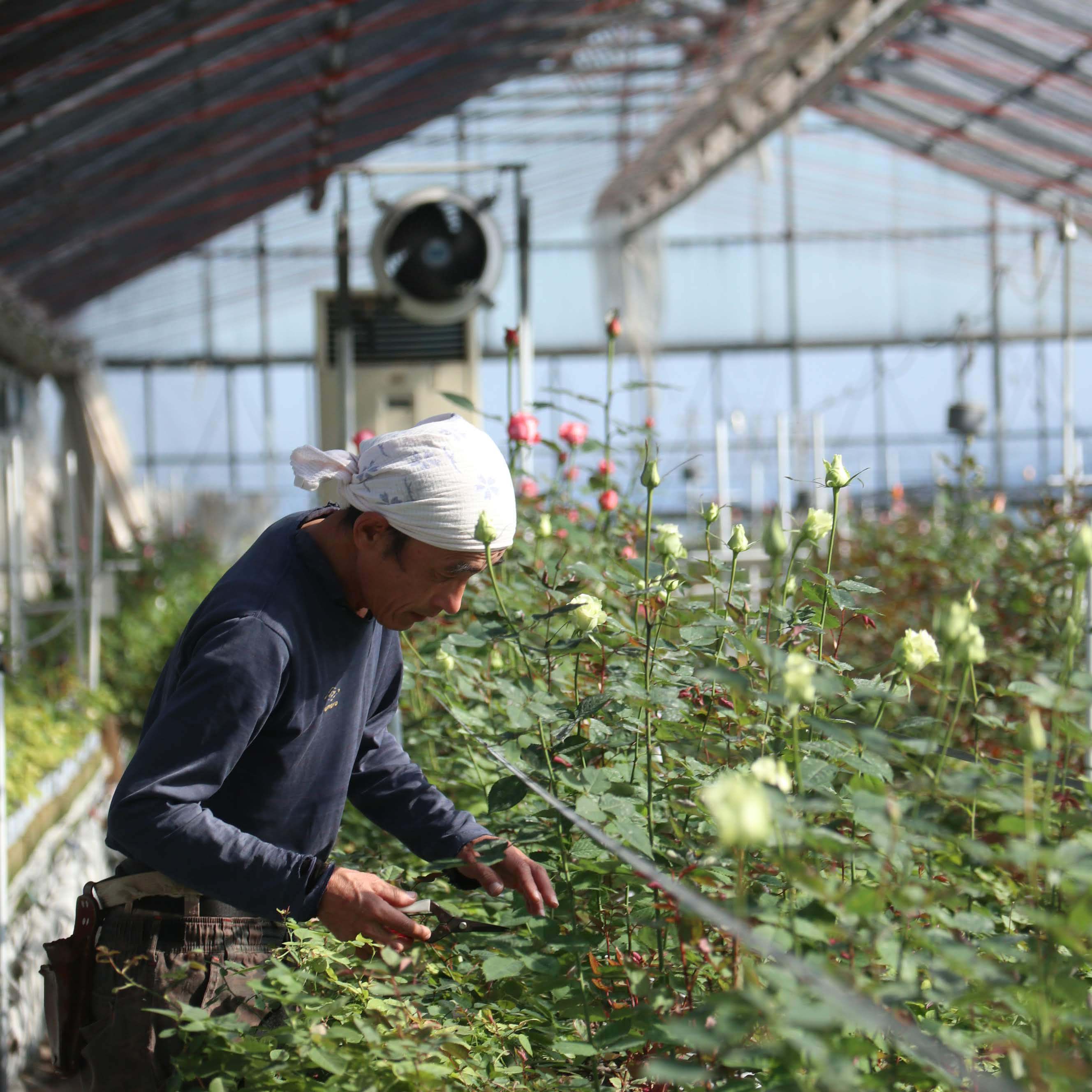残された命を大切に使いたいという思いと、形あるものが一瞬にして無くなってしまった震災被害を目の当たりにしたことで、「命」や「絆」など目には見えないけど大切なことをモノづくりを通して伝えたいと、わたしの故郷・愛媛県が当時生産量1位を誇っていたバラの生産者に転身しました。