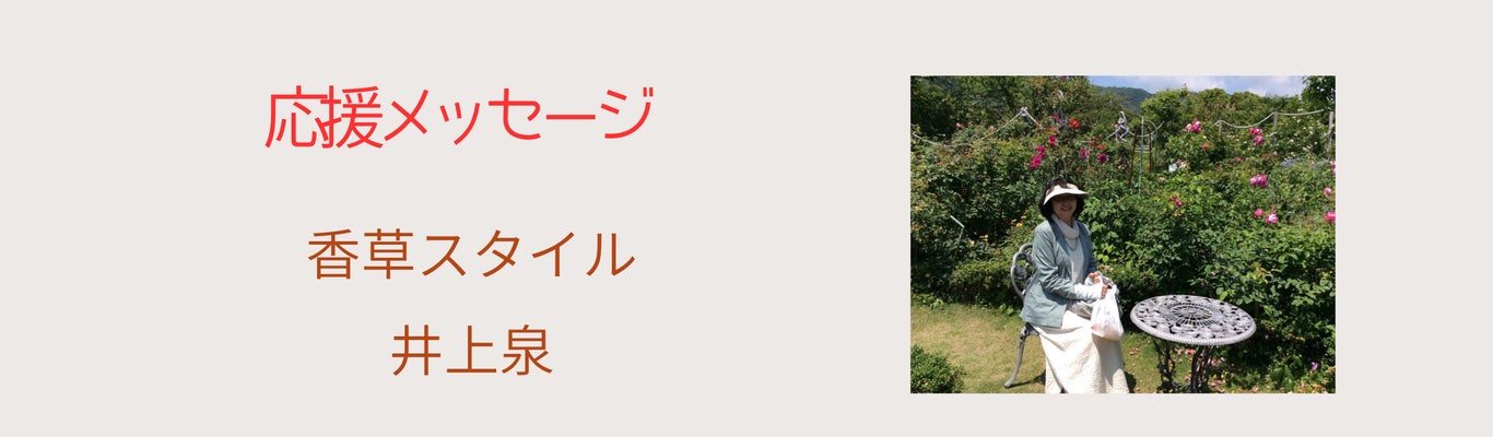 ゆきさんご夫婦が丹精込めて育てられた波動薔薇さんとは、 愛媛県に居るときからお世話になっていて もう数十年来、自然に寄り添ってくれていた事に 先日、波動薔薇園さんで開催したお茶会時に気づいたのでした。 その時の参加者さまからも、空気や波動が体に温かく感じ生き還り、 女性らしさを育み包まれた活力にみなぎると皆が言っていたことに、 この場所がほっとゆるみ同化し、自分達の内側に戻るところなのではと思っています。 現在京都に居りますが、開店時のお祝いはもちろん 必ず波動薔薇さんを送っていただいたり 急にお空に向かう方がいて、電話越しで泣きながら注文したり 節あるごとに、嬉しい時も悲しい時も そっと寄り添ってくれる存在です。 これからも沢山の愛が溢れる幸せを、循環させてください! 京都からですが、 ずっとこれからも応援し感謝いたします。 Aroma&Herb air 近藤 理愛
