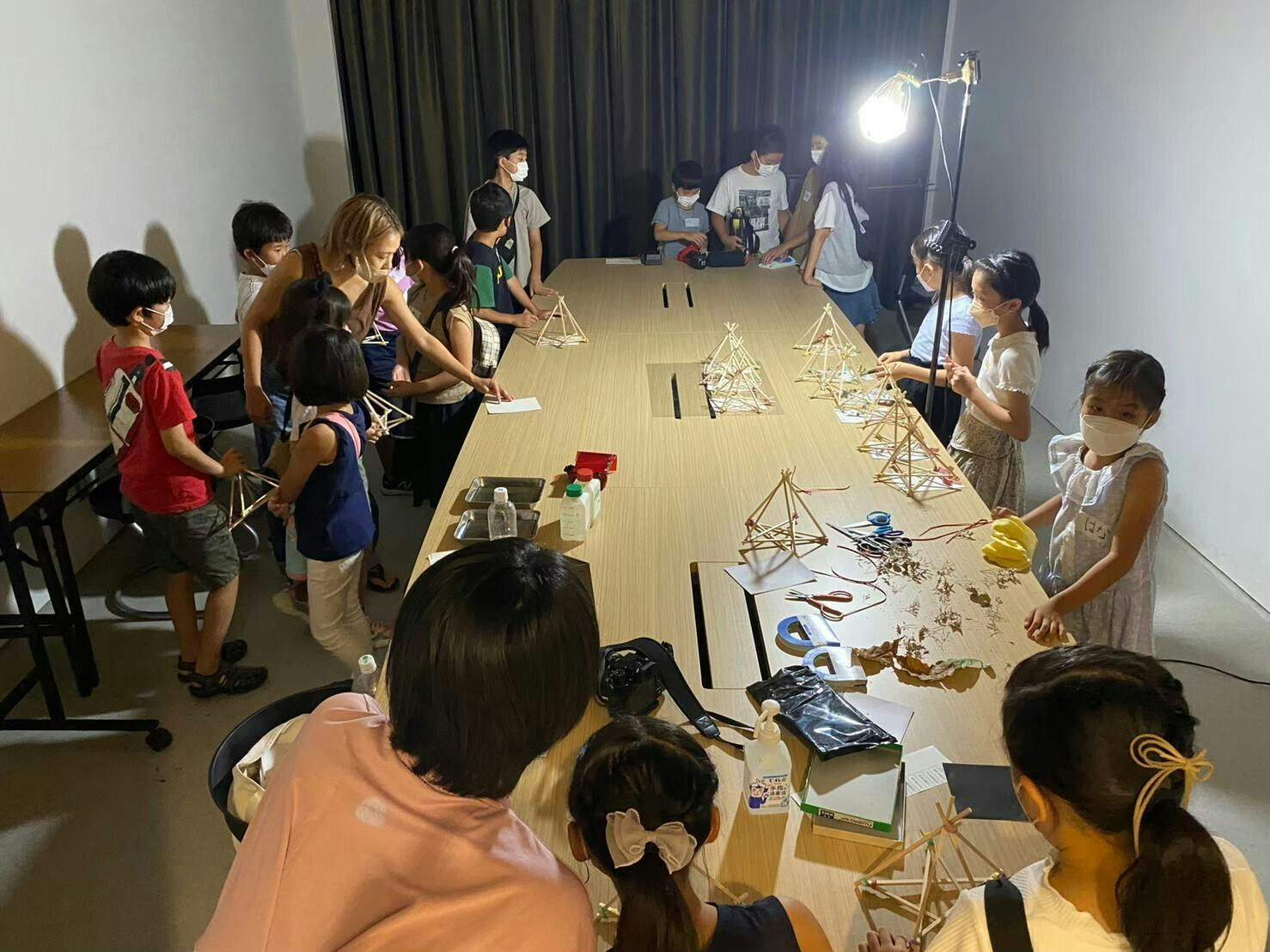また、土佐市つなーででの開催が多いのは、メンバーで建築家の山本直子が設計に関わって、結成当時に開館したばかりであり、ホール以外の部分を含めて柔軟な活用方法ができる施設だったため、「ナイト☆つなーで」では体験メニューごとに屋上を含むいくつかのフロアや部屋を使って実施し、参加したこども達には探検気分を味わっていただけました。
