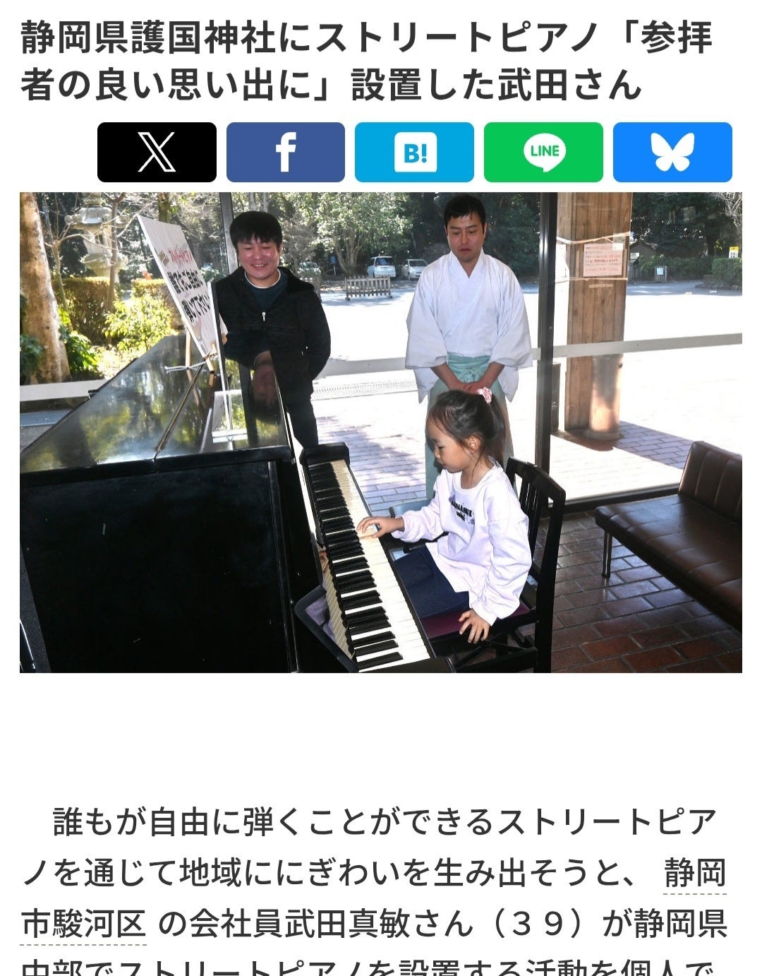 2025/03/22 21:222月23日に一般公開した静岡県護国神社のストリートピアノの記事が本日の静岡新聞朝刊に載りました。https://www.47news.jp/12340296.html もっと見る