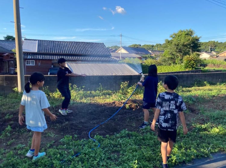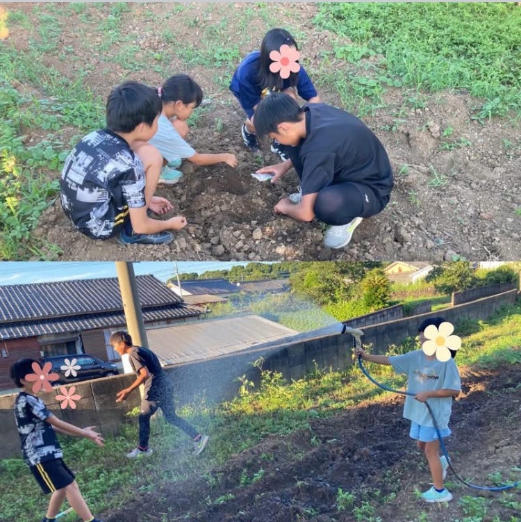 近所の人が声をかけてくれて、近所の子どもたちが水やりと種植えをしてくれました。