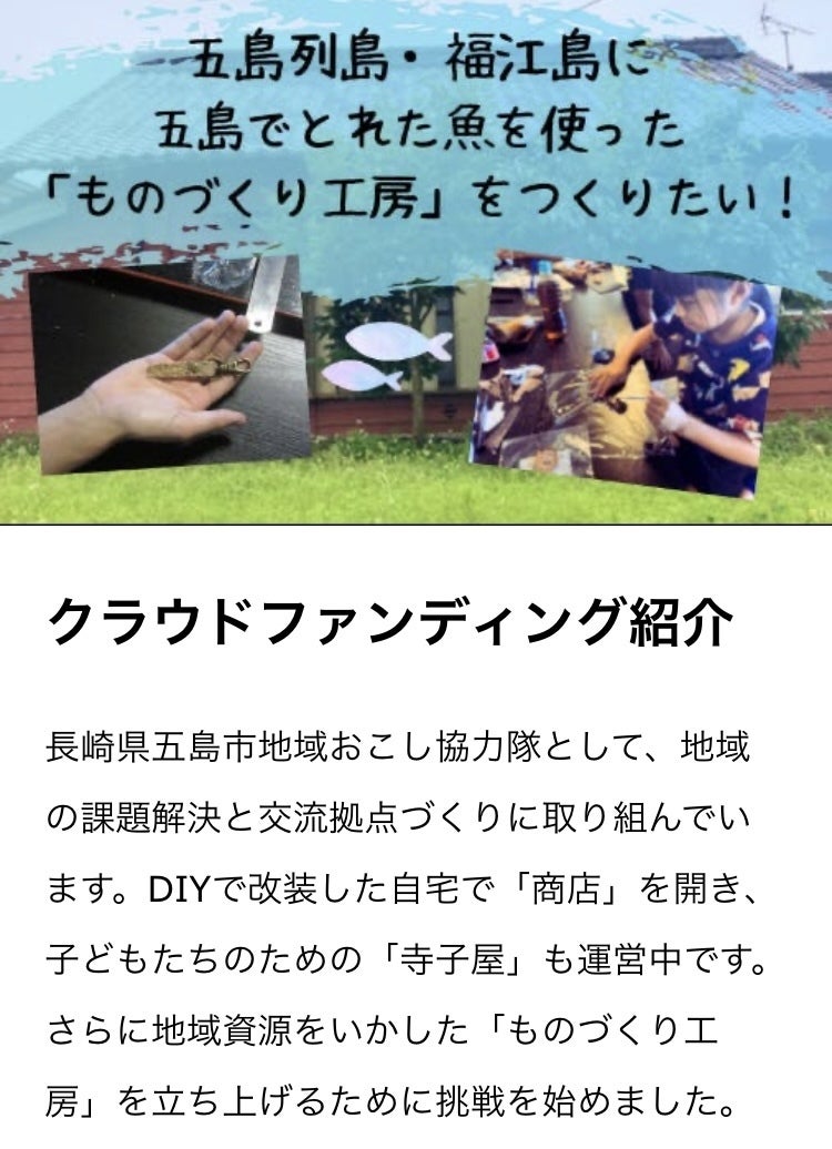『五島列島・福江島に、五島でとれた魚をつかった「ものづくり工房」をつくりたい』