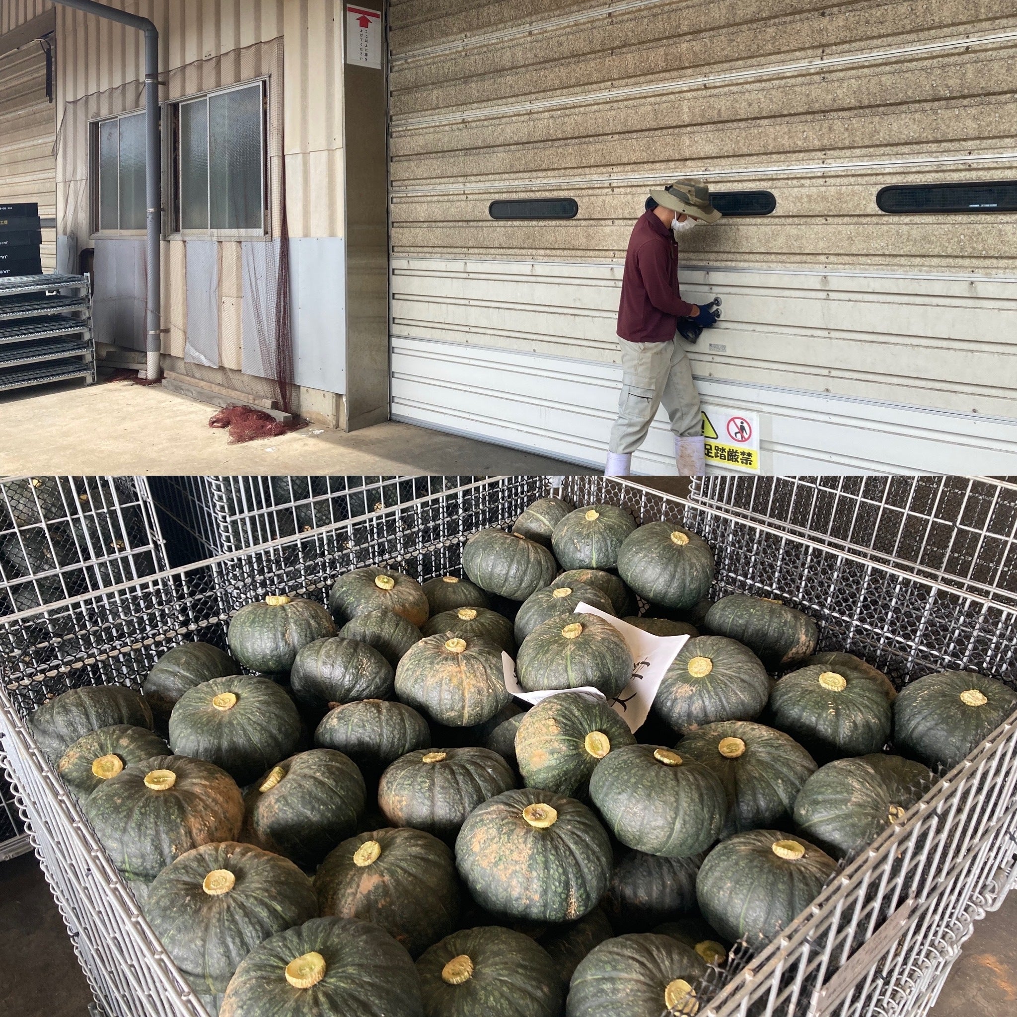 「かぼちゃが日に焼けて悪くならないか、見ているんだよね。」