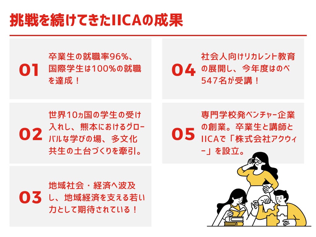 そのソフト復興の一環として、2022年4月に専門学校イデアITカレッジ阿蘇(IICA:イイカ)が誕生。IICAの建学の精神は「自ら機会を創り出し、機会によって自らを変えて、自分と世界を幸せにする」。