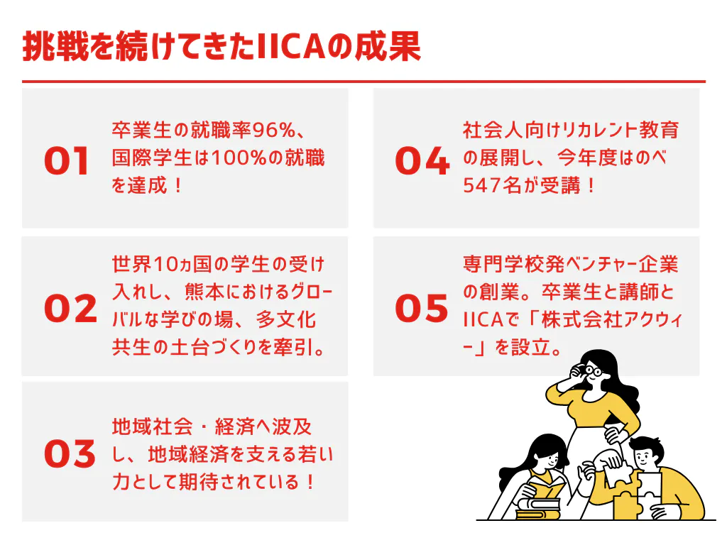 また、文部科学省の採択を受け、IT企業や観光事業者向けに社会人向けリカレント教育プログラムを開発。南阿蘇にある専門学校として幅広い年代の人材育成に力を入れています。