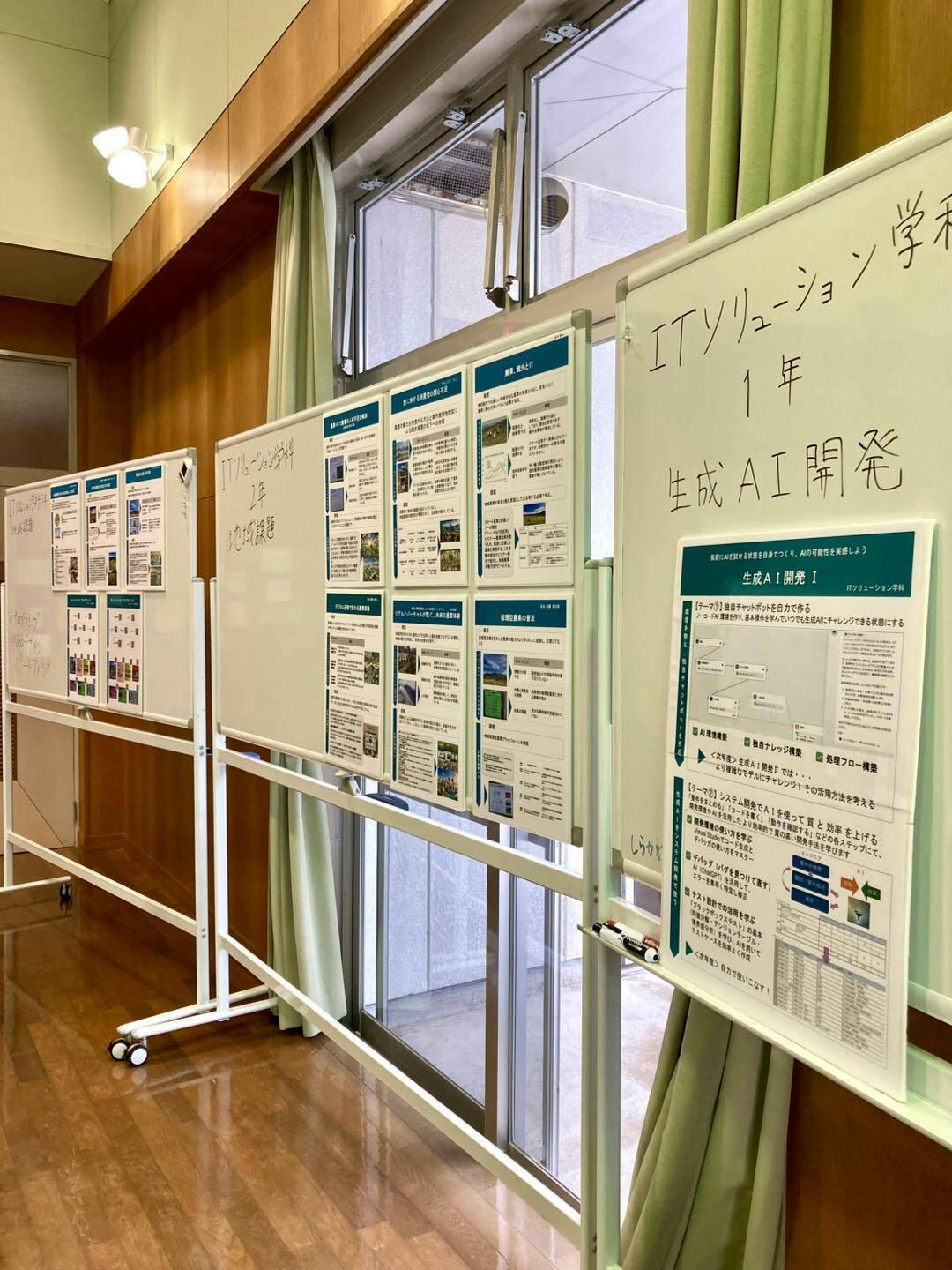 ITソリューション学科や地域観光デザイン学科といった学科ごとの特色を活かした成果物がパネル展示などでも並びます。発表する学生の中には、個性の光るユニークな取り組みもありました。