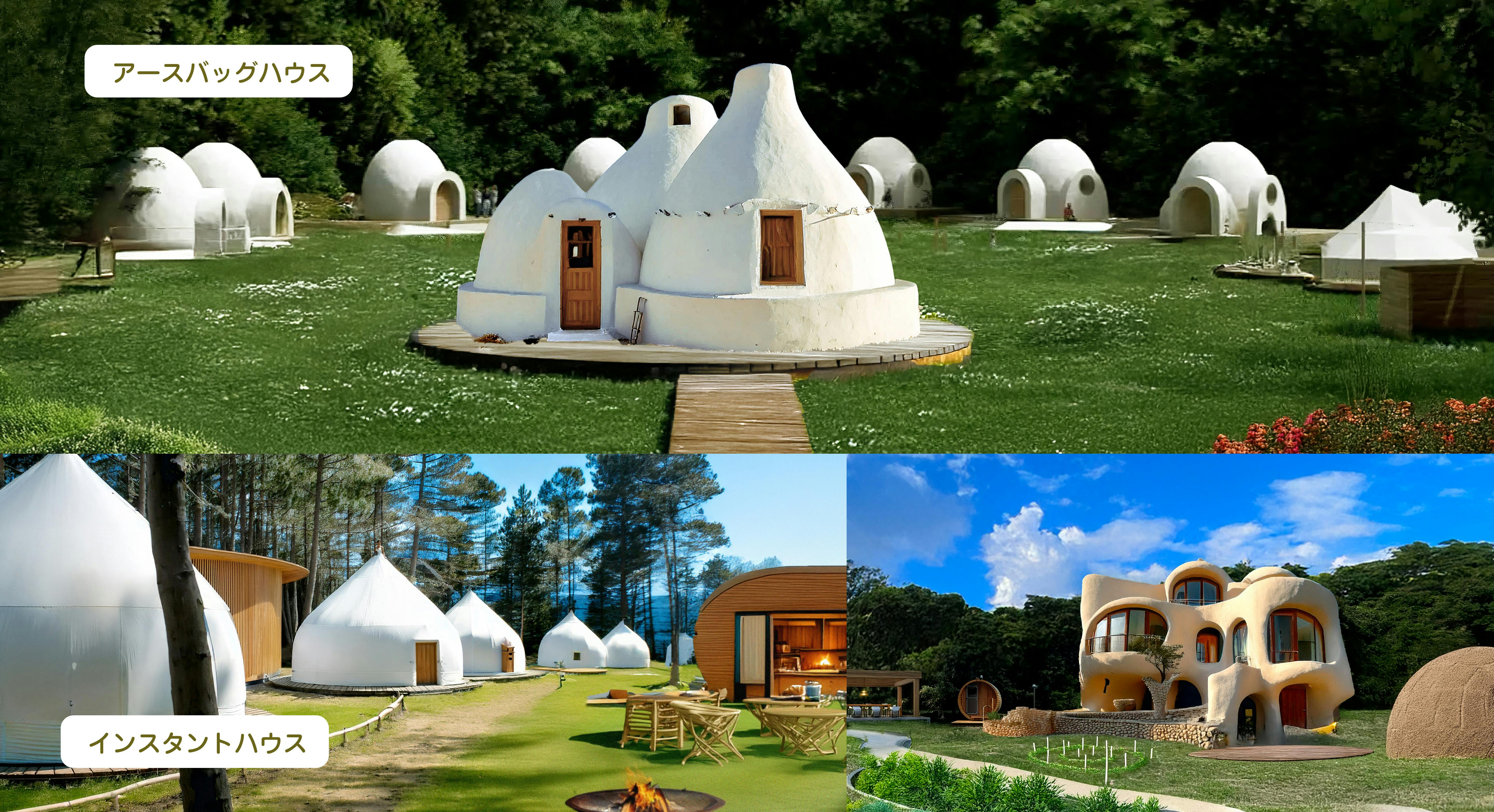 住居としては、アースバックハウスやアースシップなど環境に優しくレジリエンスな建築を自分たちの手で作りあげていくと同時に、手軽に多くの人を受け入れられるインスタントハウスなども取り入れていきます。