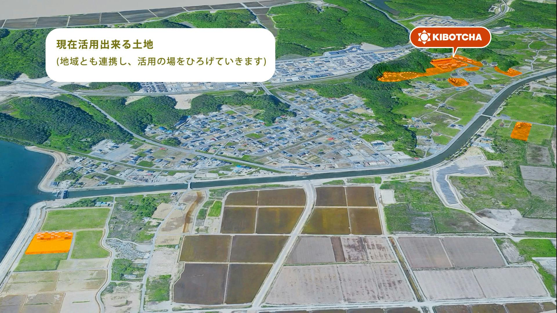行政との連携も受け、現在、KIBOTCHAスマートエコビレッジの活用できる土地は旧小学校跡地だけでなく野蒜(ノビル)地区の各所に拡張することができました。