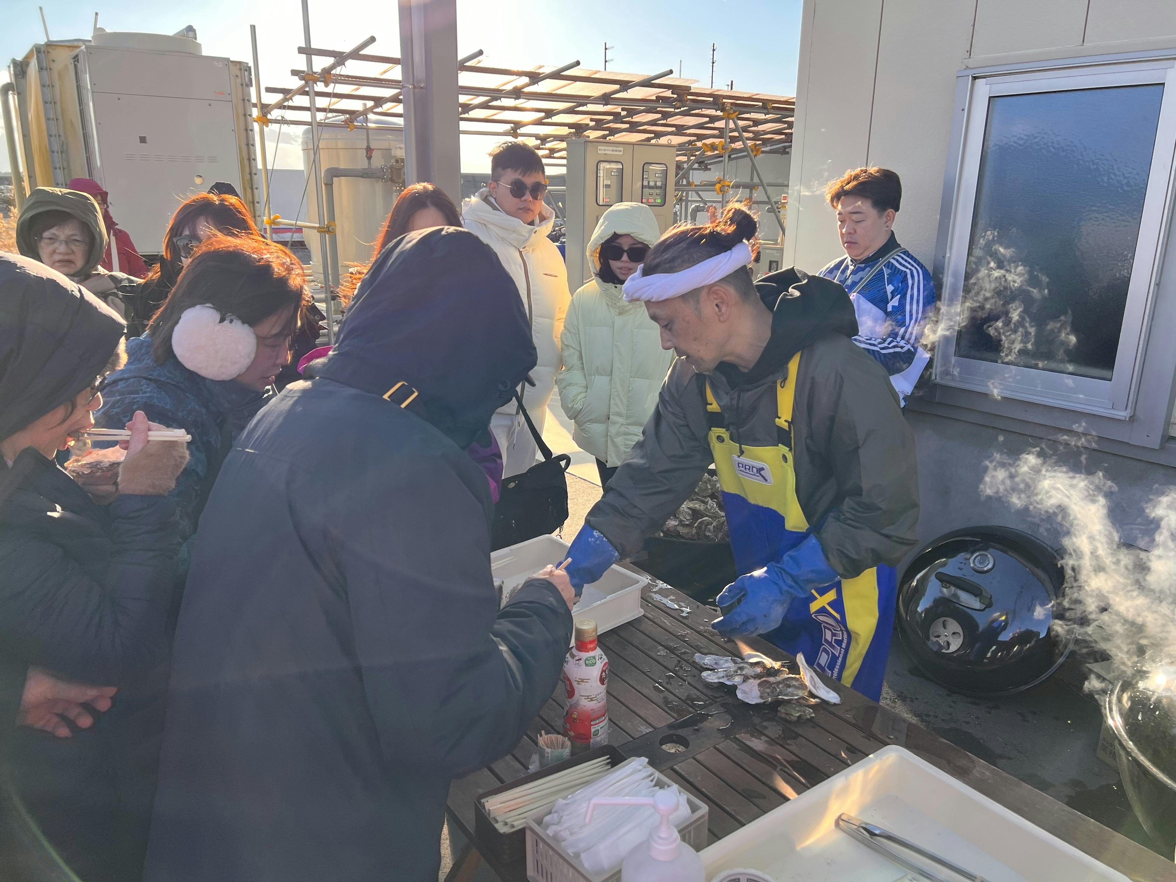 一番盛り上がったのが、オイスターマンによる焼き牡蠣試食でした。